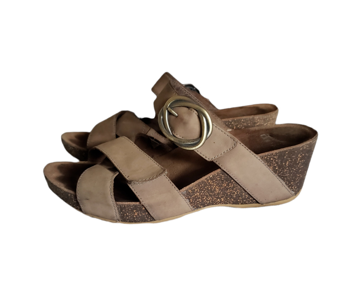 Dansko Women's Susie Taupe Leather Open Toe Slide Sandals Size 37 6.5 - 7