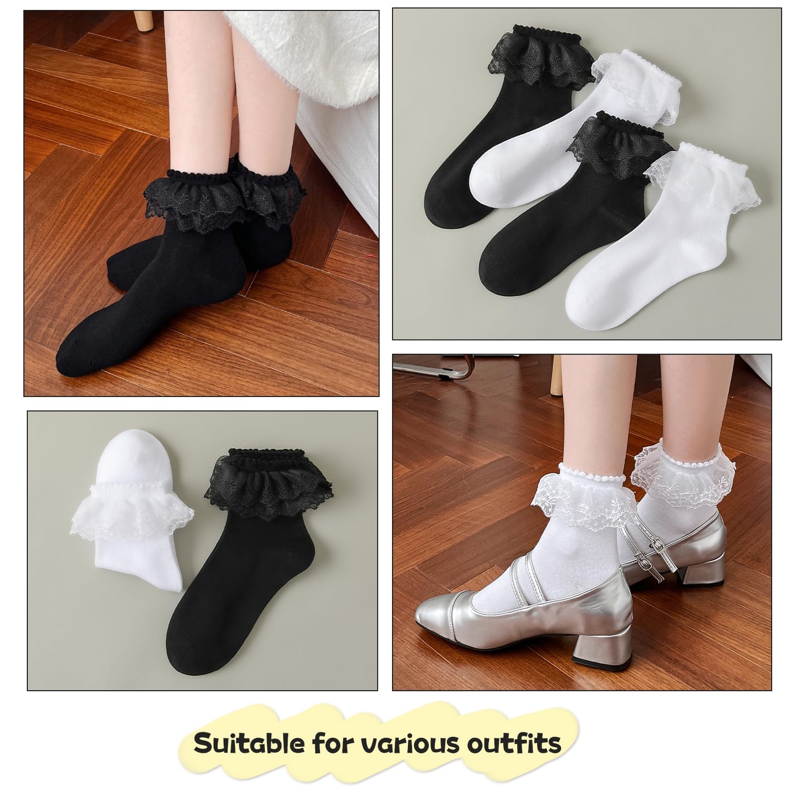 как выглядит Lace Ruffle Frilly Ankle Socks for Women Double Layer Lace US Numeric 5 9 Whi... фото