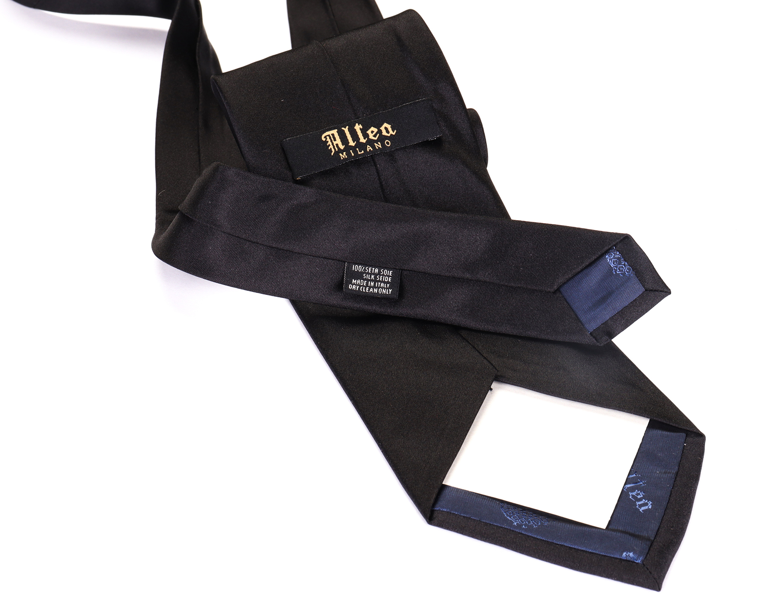 NWT ALTEA Milano pure silk TIE black blue luxury handmade Italy