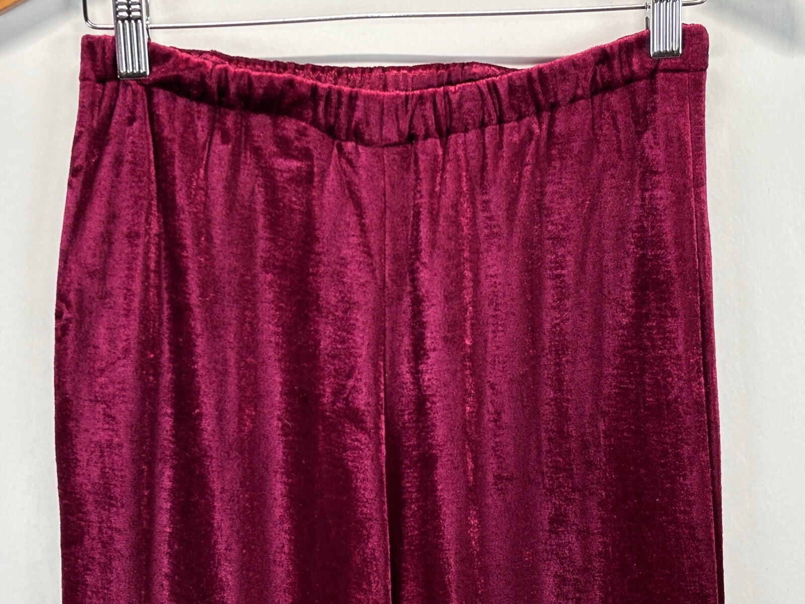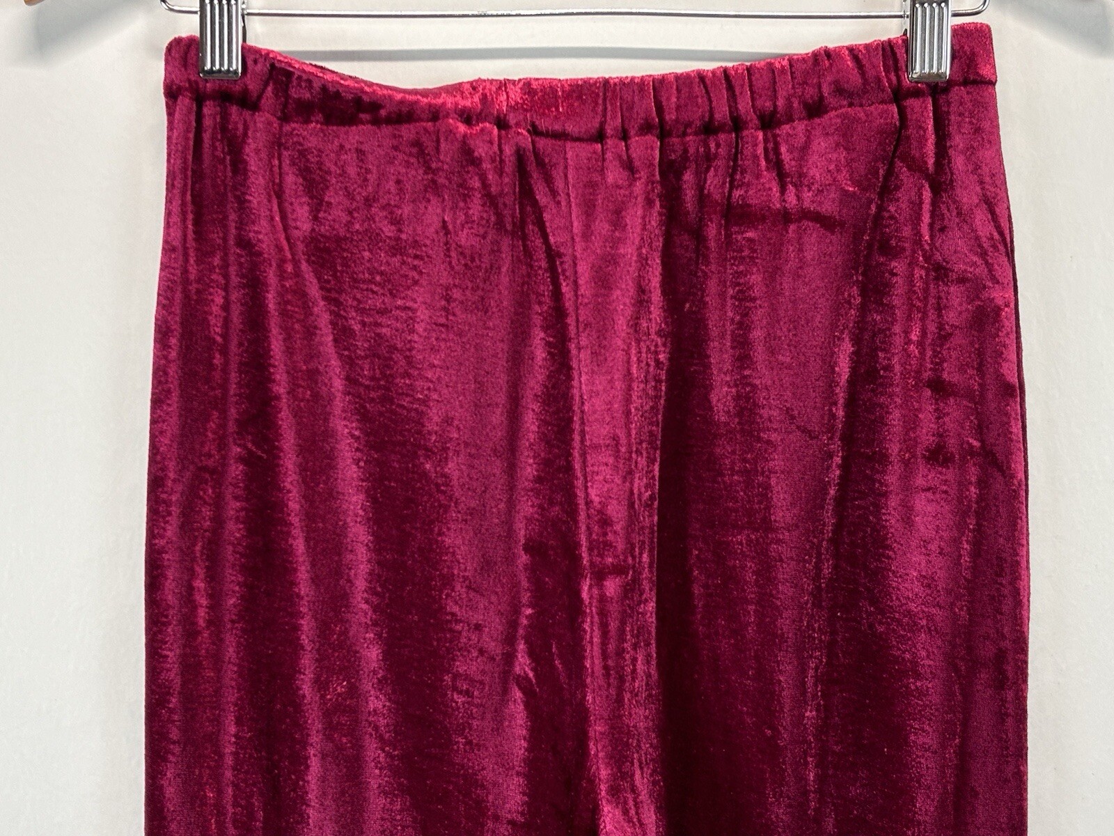 Vtg Unbranded Red Velvet Velour Pants Pull On Elastic Waist 70s Hippie Whimsigot