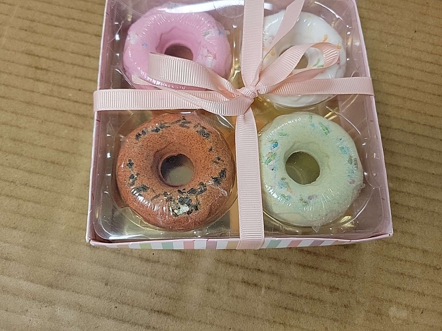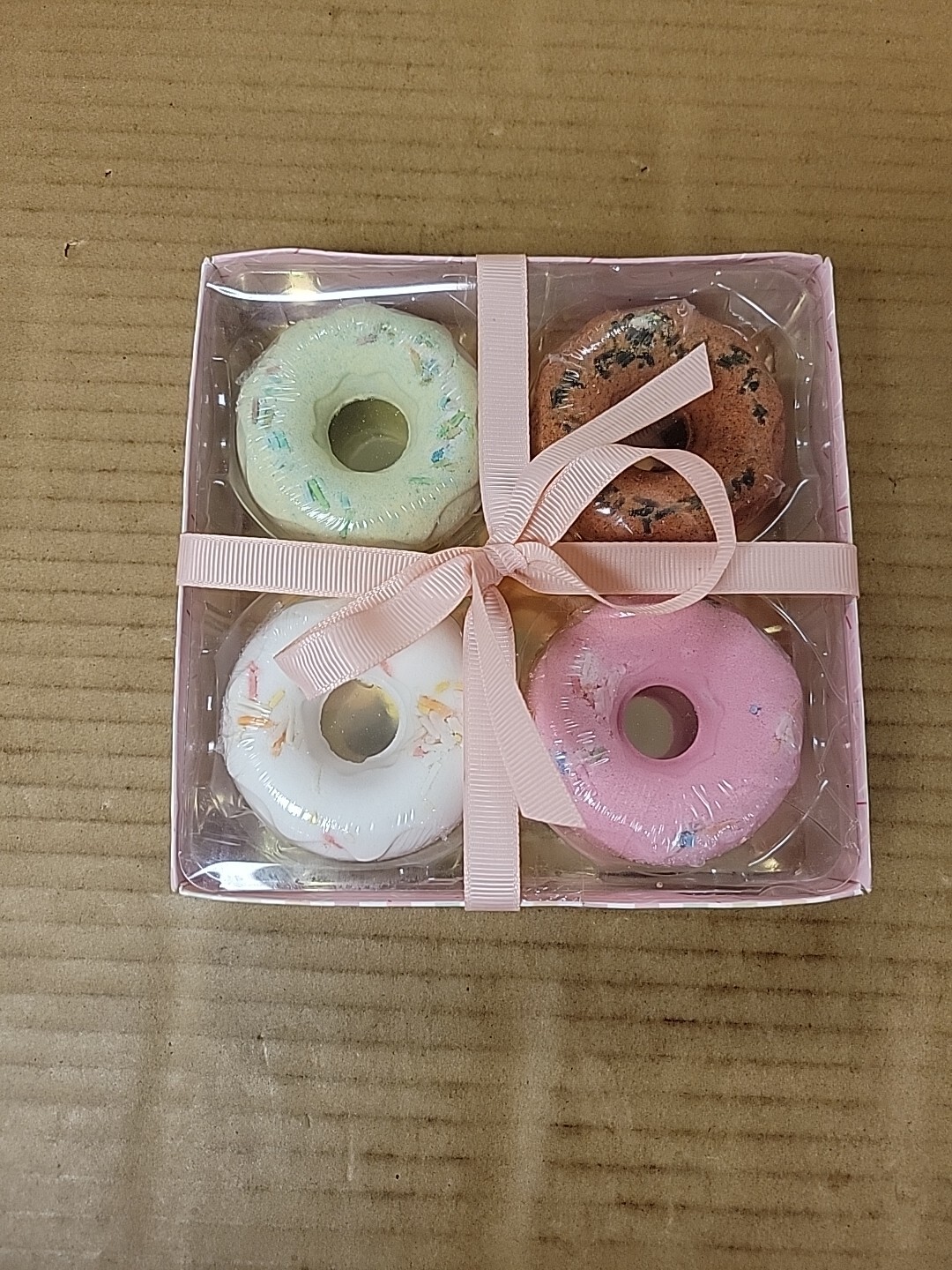4 Pack Donut Bath Bombs Gift Set Vanilla Chocolate Strawberry Coconut SEE PICS