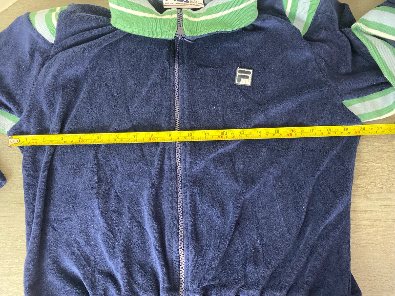 как выглядит Vintage Fila Velour Track Jacket Navy Blue Green White Active Women s Size Large фото
