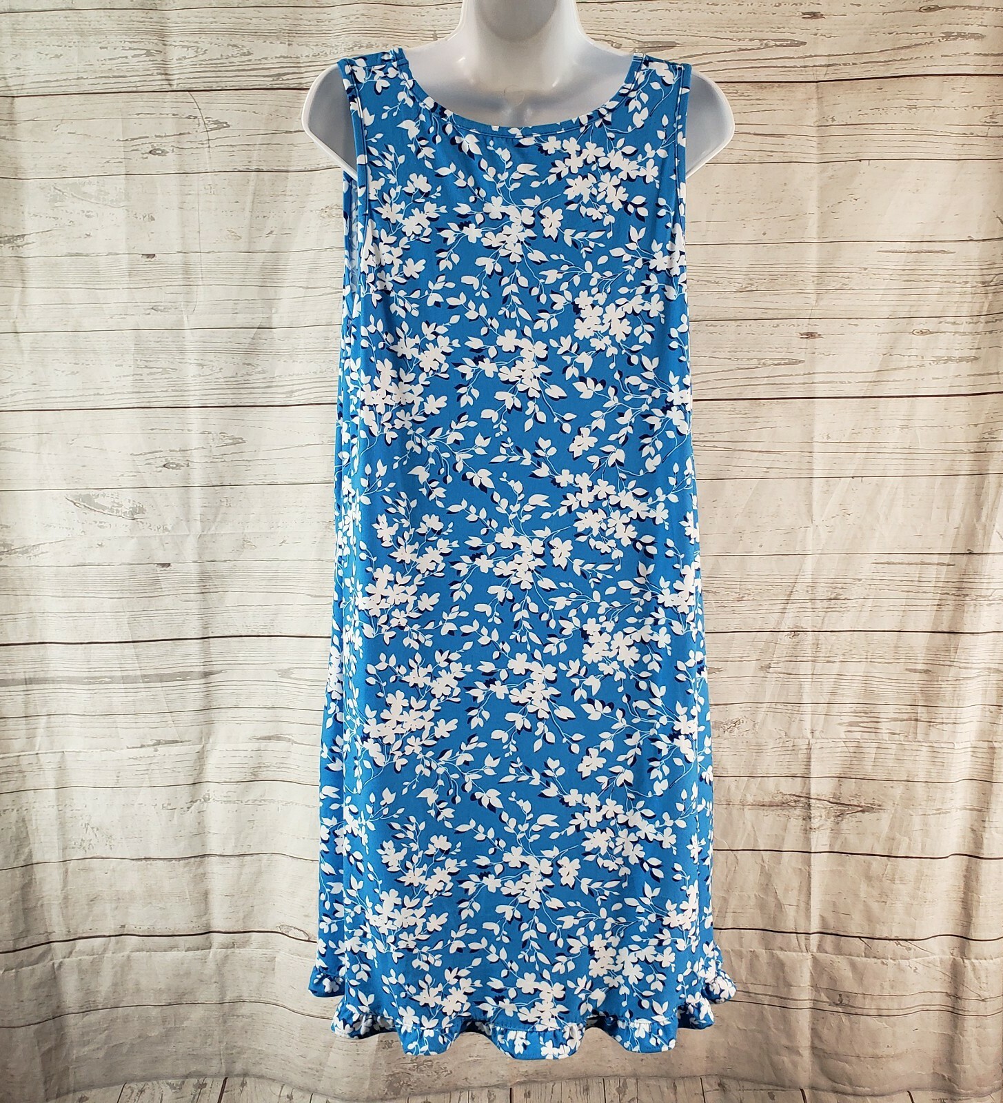DRAPER JAMES Ruffle Nightie in Blue Shadow Floral White Sleeveless L/XL