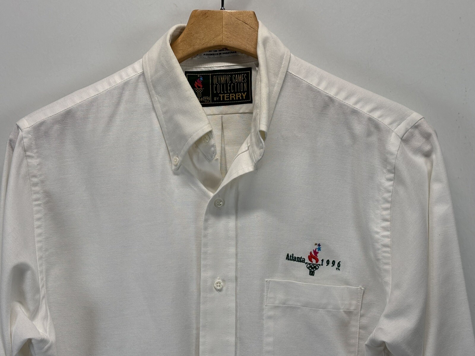 Vtg Atlanta 1996 Olympics Button Down Shirt Sz 15.5 Men s White Embroidered