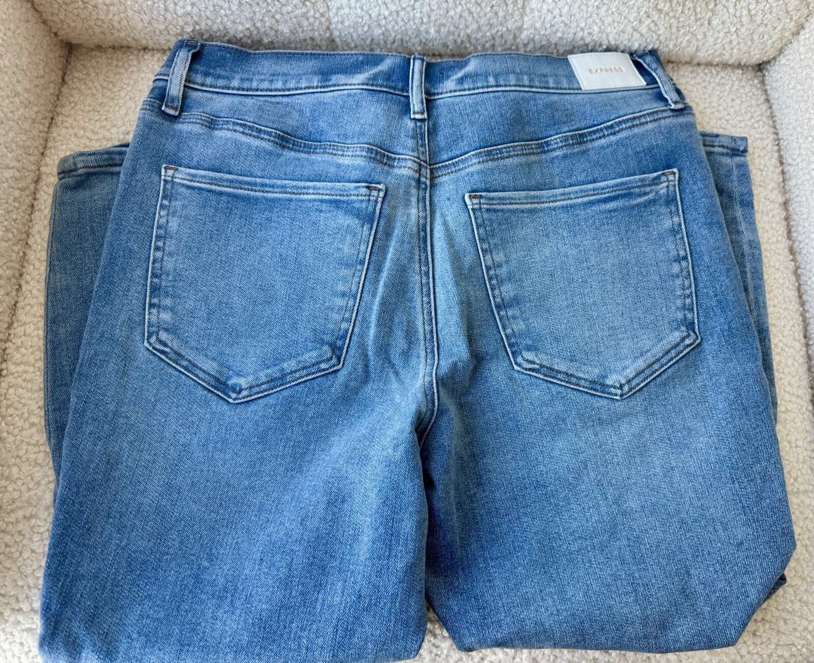 как выглядит Express Medium Wash Distressed High Rise Skinny Jeans Size 14 Short фото