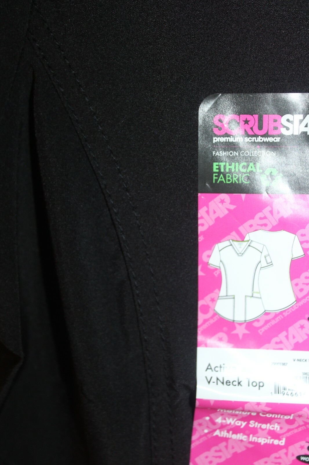 NWT ScrubStar Womens Active V-Neck Top Black Short Sleeve Premium Srcrubwear