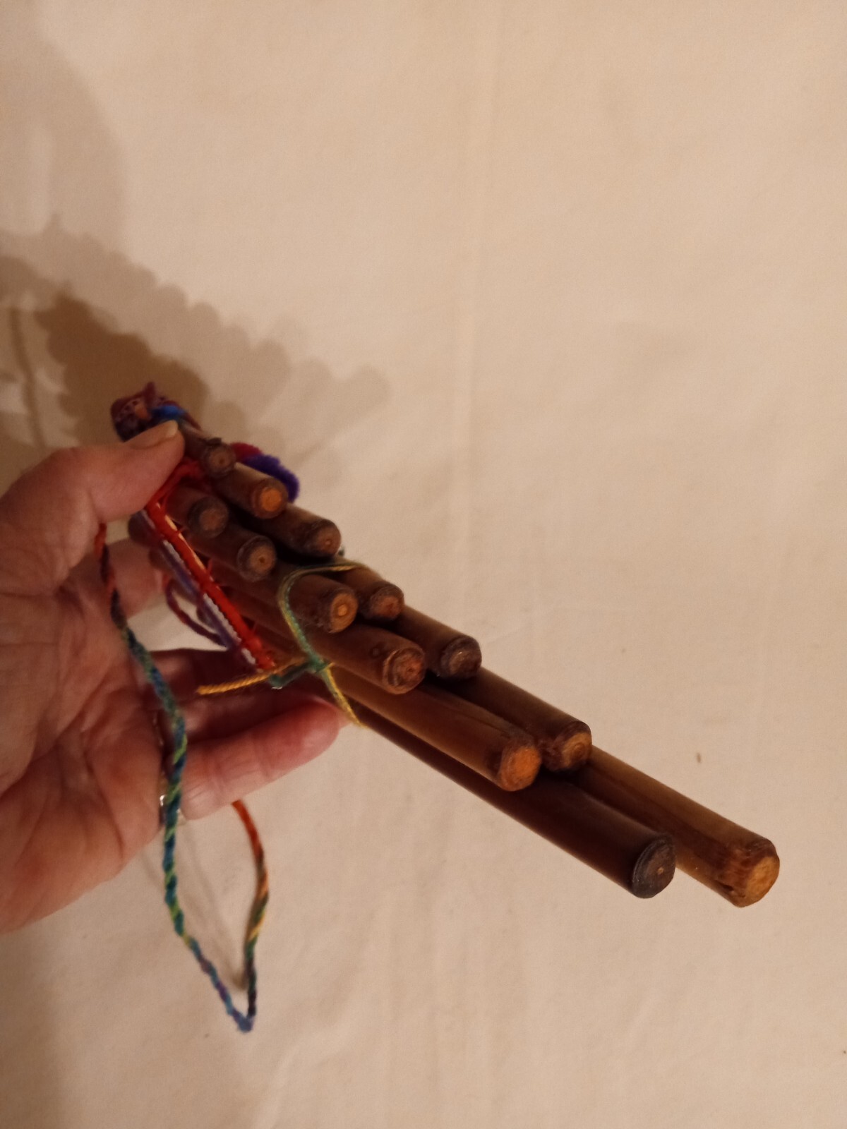 как выглядит Authentic Peruvian Handmade Reed/Bamboo Pan Flute With Colored Cloth - 13 Pipes фото