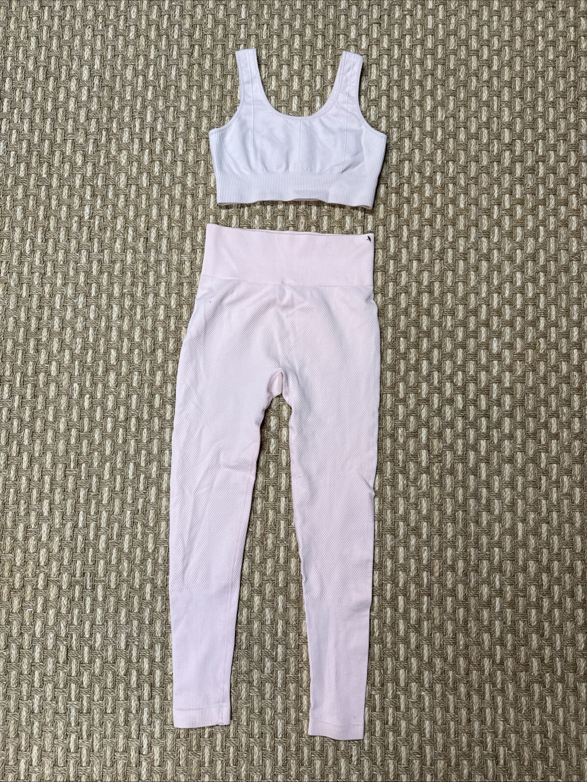 как выглядит 2 Pc Workout Set Ribbed Sports Top / Bra Leggings Sz S Pink Color фото
