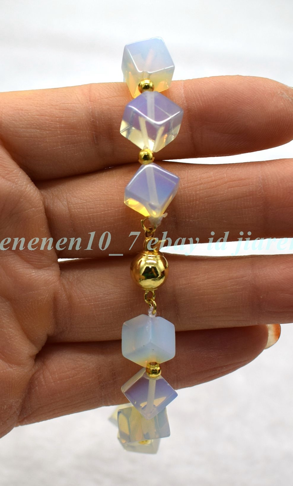 как выглядит Natural Pretty 8x8mm Square Beads White Opal Crystal Gemstone Bracelet 7.5" фото