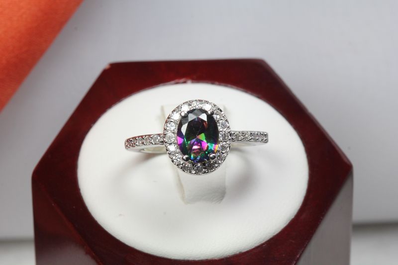 как выглядит OVAL CUT STERLING SILVER 925 CZ MYSTIC RAINBOW TOPAZ W ACCENTS RING-1.6 CTW sz8 фото