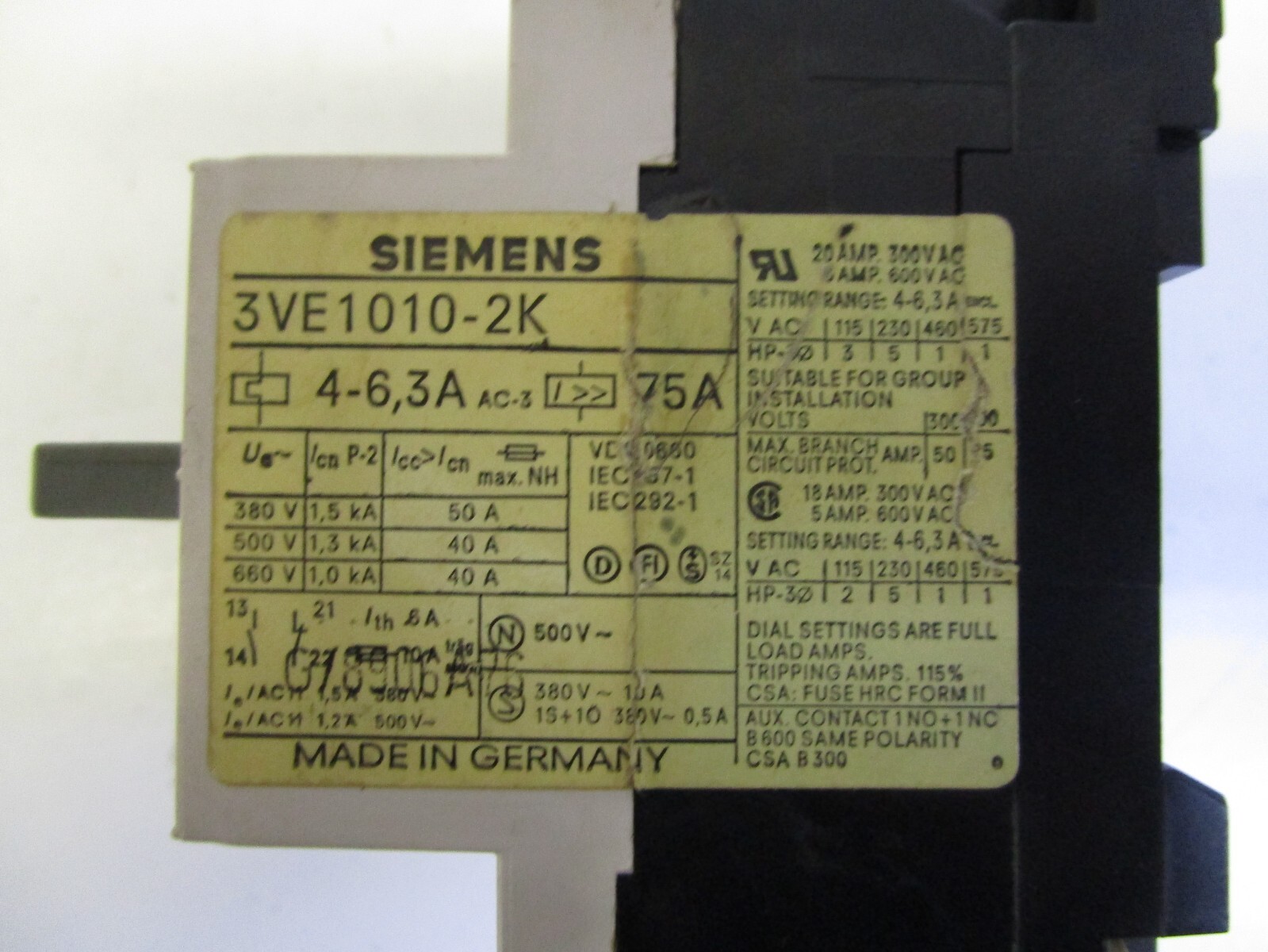 как выглядит SEMENS 3VE1010-2K MOTOR STARTER USED FREE SHIPPING фото
