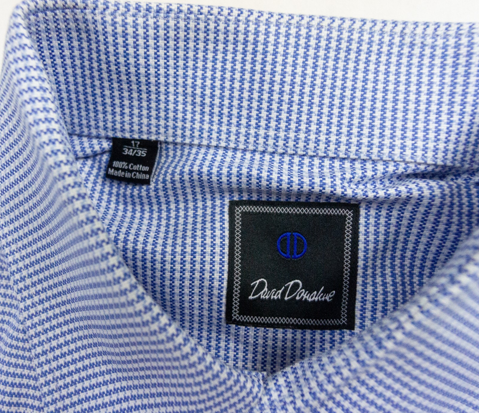 как выглядит David Donahue Shirt Mens 17 / 34/35 Blue Button Up Long Sleeve Collared Dress фото