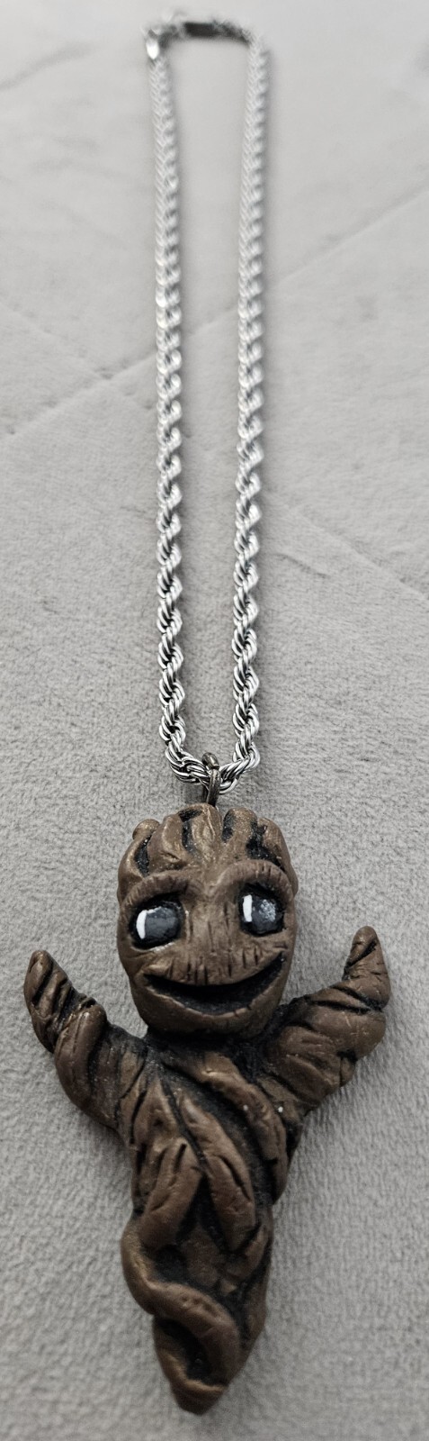 как выглядит Groot Handmade Necklace Silver Chain Guardians of the Galaxy Resin - Repaired фото