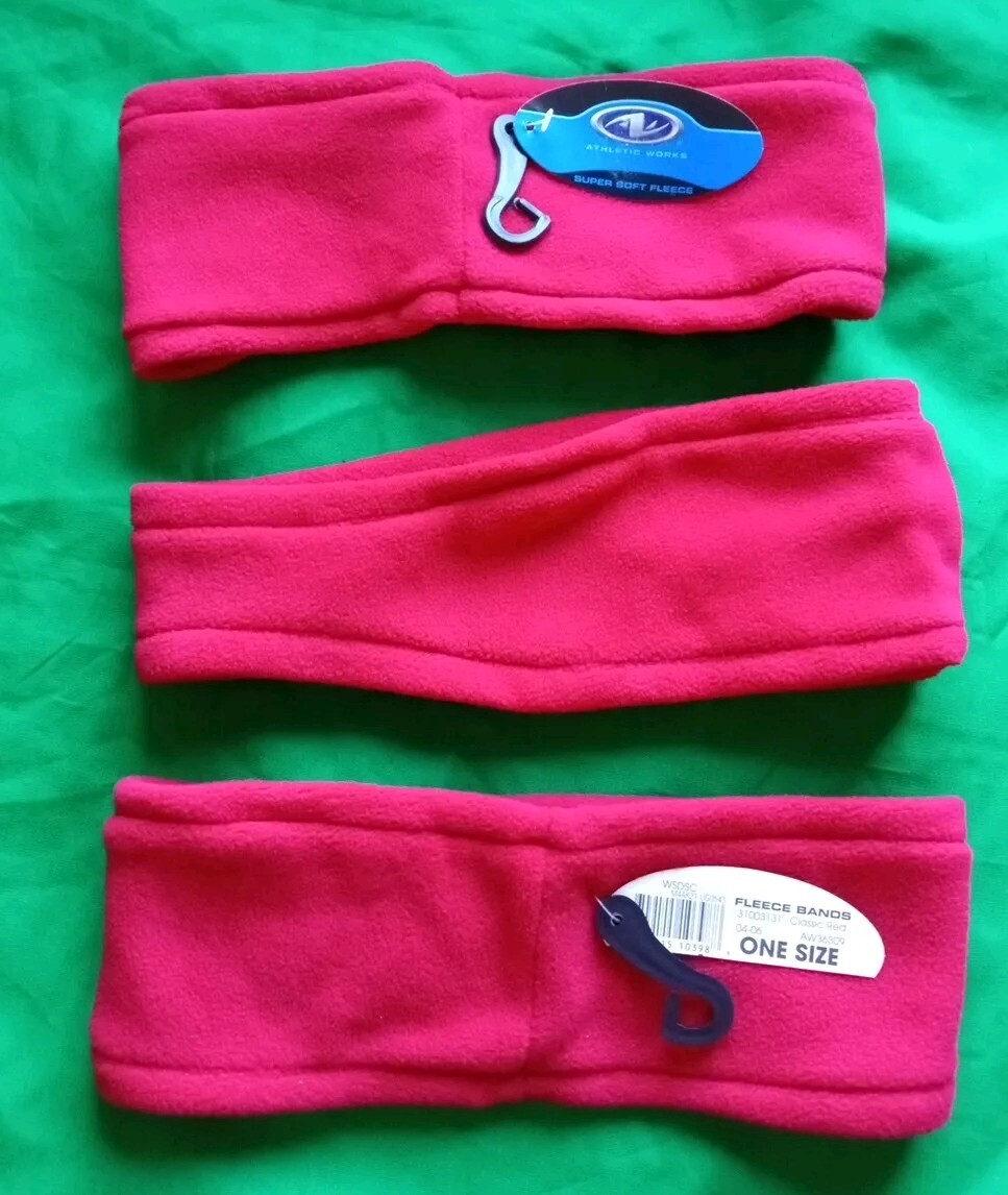 Ear Headband Knit Ear Cover Winter Fall Warmer Classic Red Fleece Package of 3