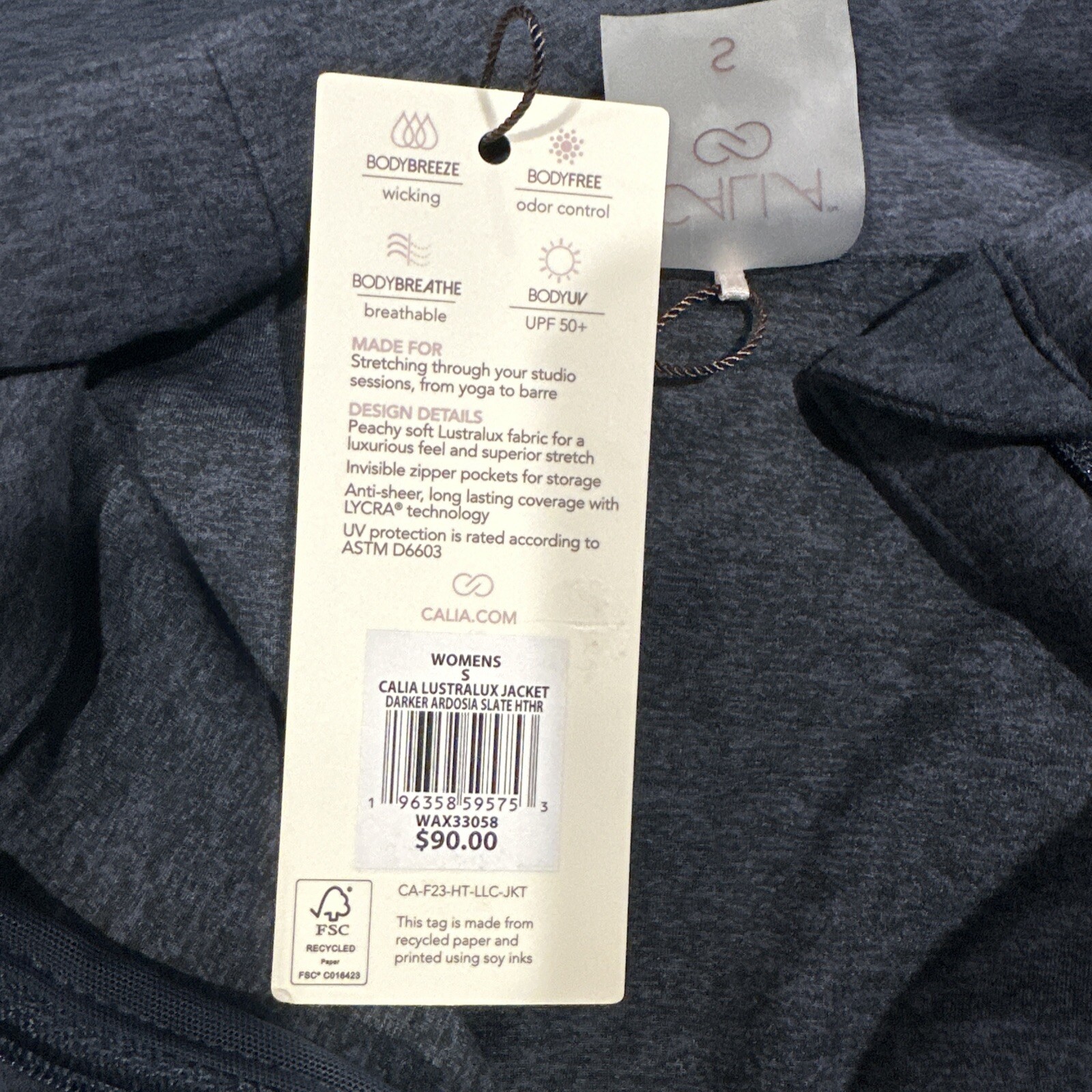 NWT Calia Lustralux Jacket Women s Darker Ardosia Slate Heather Size S Wax33058