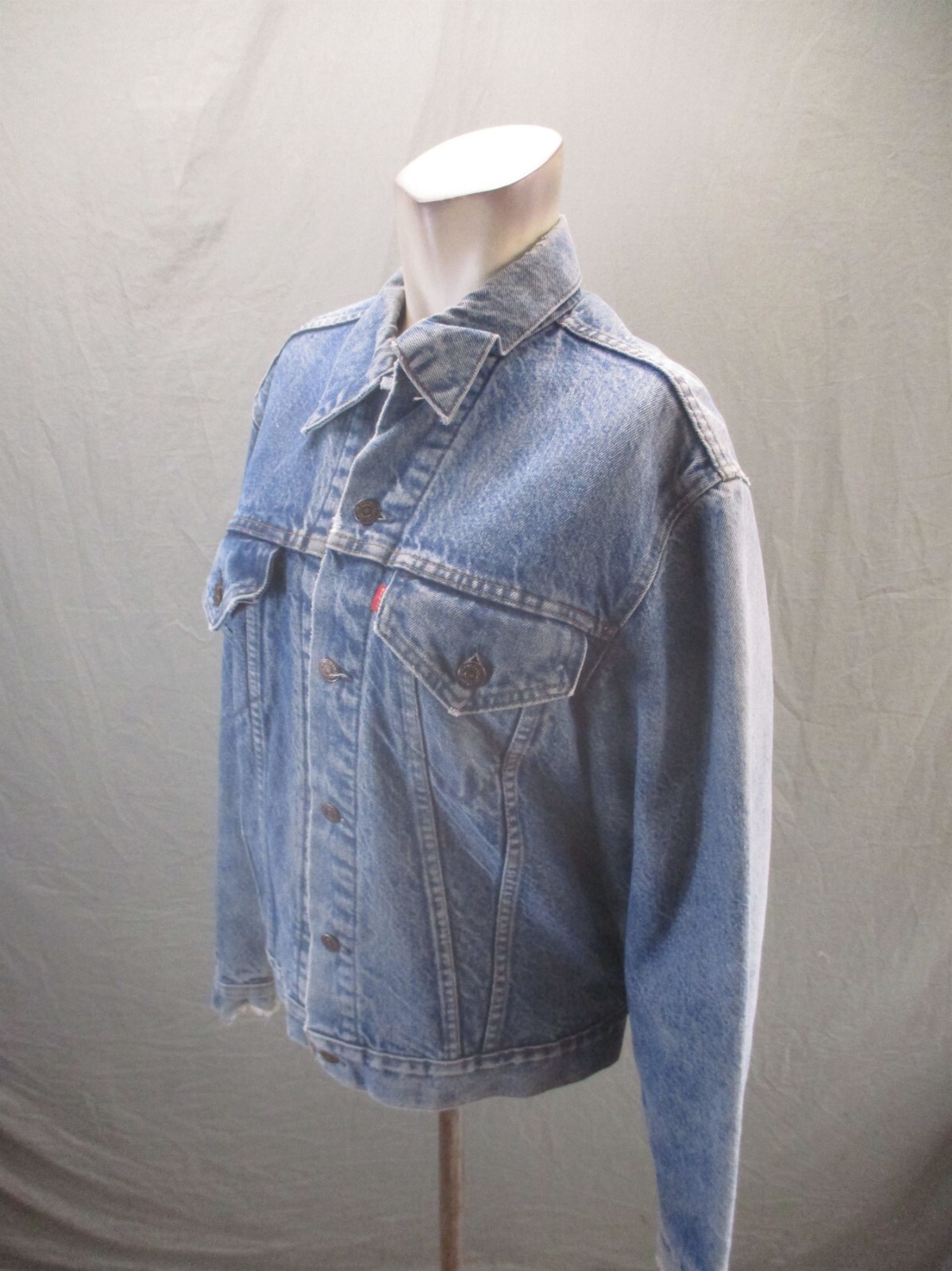 VTG Levis Size S Mens Blue 100 Cotton Pocket Button Up Denim Trucker Jacket 769
