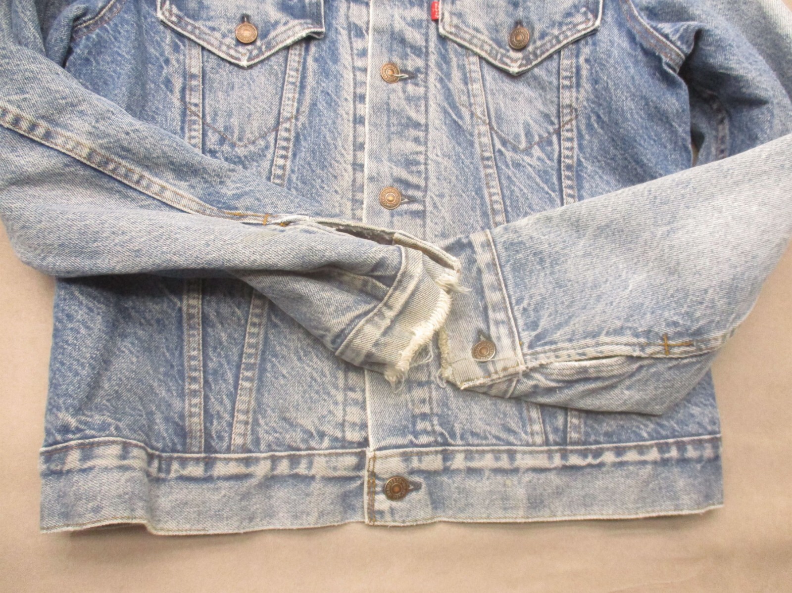 как выглядит VTG Levis Size S Mens Blue 100 Cotton Pocket Button Up Denim Trucker Jacket 769 фото