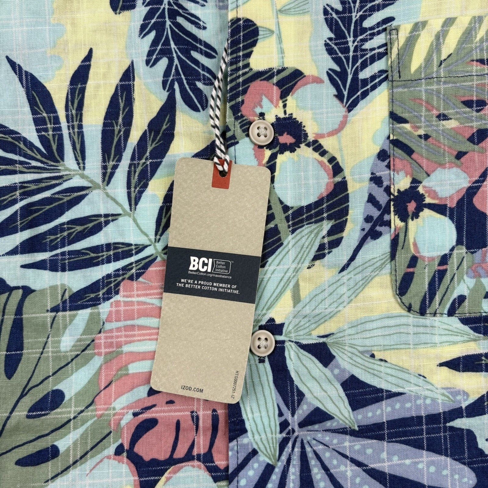 Izod Saltwater Hawaiian Floral All Over Print Button Up Shirt Mens M NWT