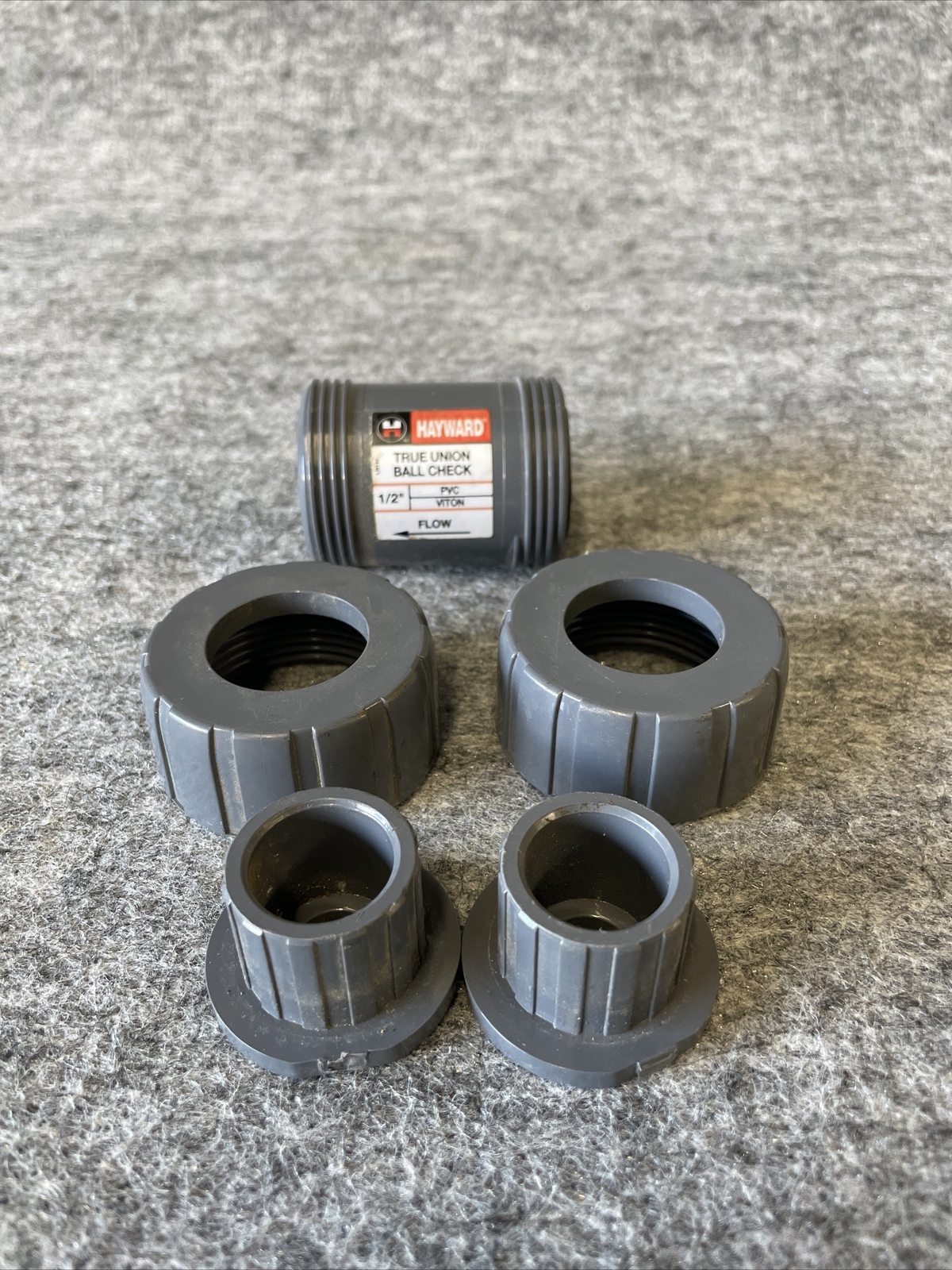 • Hayward TC10050ST 1/2" PVC Viton True Union Check Valve Soc x Soc New