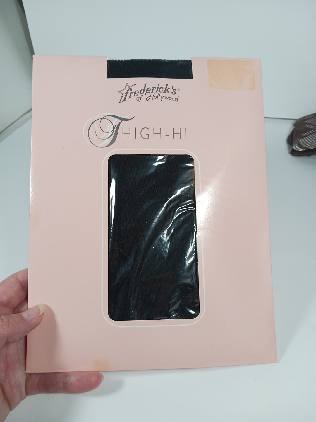 как выглядит Vintage NIP Fredericks Of Hollywood Black fish net Medium Thigh High Stocking фото