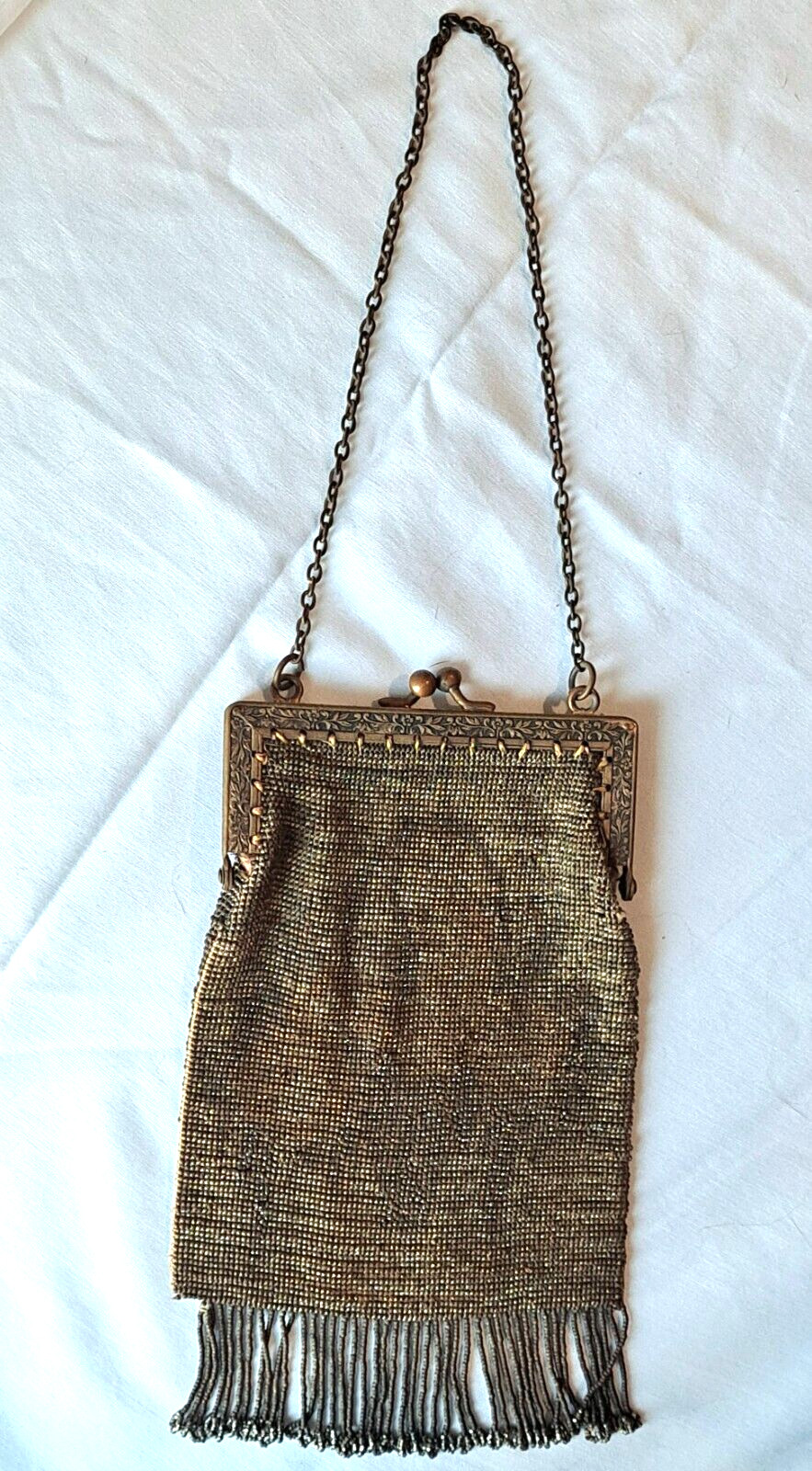 Antique Vtg Beaded Purse/Evening bag Art Nouveau French Micro bead w/ fringe