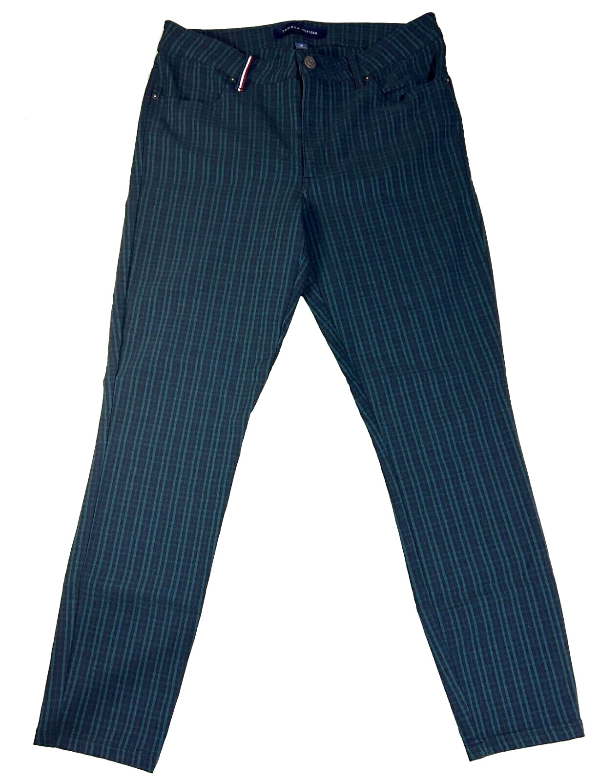 как выглядит Tommy Hilfiger Womens Printed Skinny Ankle Pants, Stretch Green Plaid - Size 10 фото