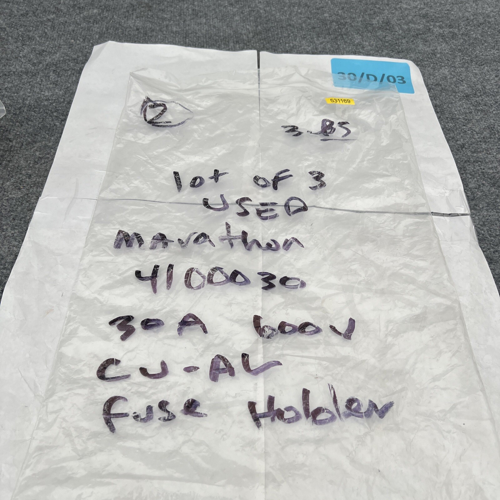 как выглядит Lot Of 3 Marathon 4100030 30A 600V CU-AL Single Fuse Holder Used фото