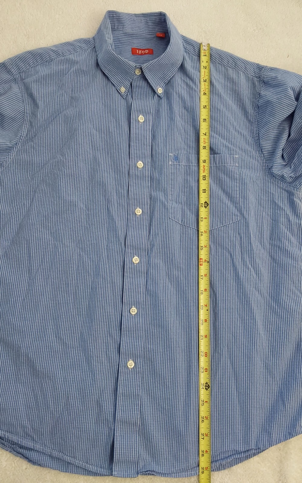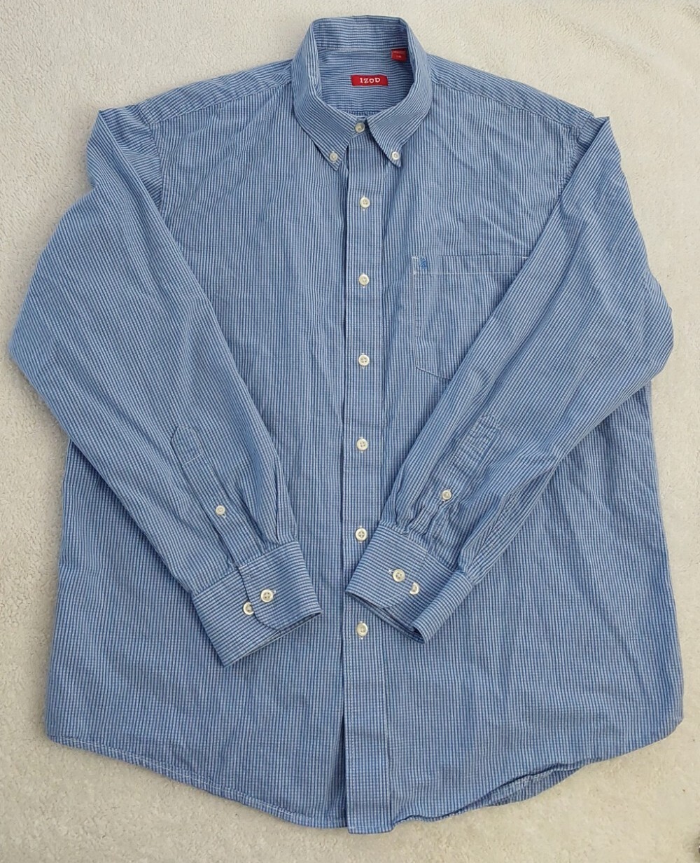 как выглядит Izod Shirt Mens Large Blue White Long Sleeve Plaid Pockets Logo Casual фото