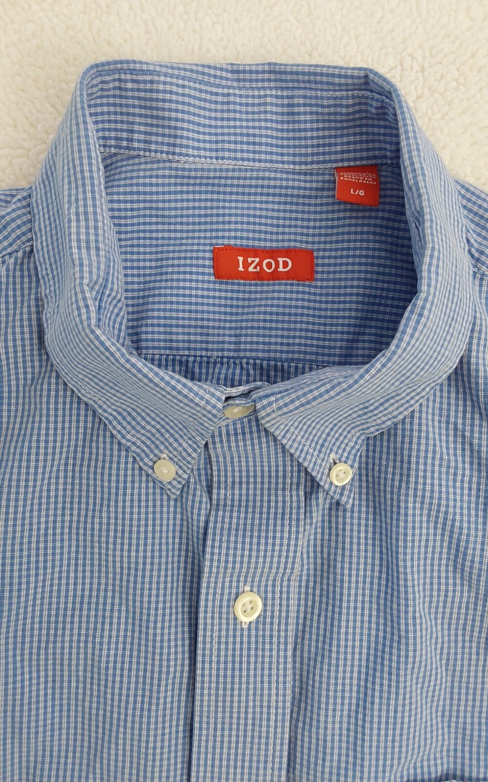 Izod Shirt Men's Large Blue White Long Sleeve Plaid Pockets Logo Casual