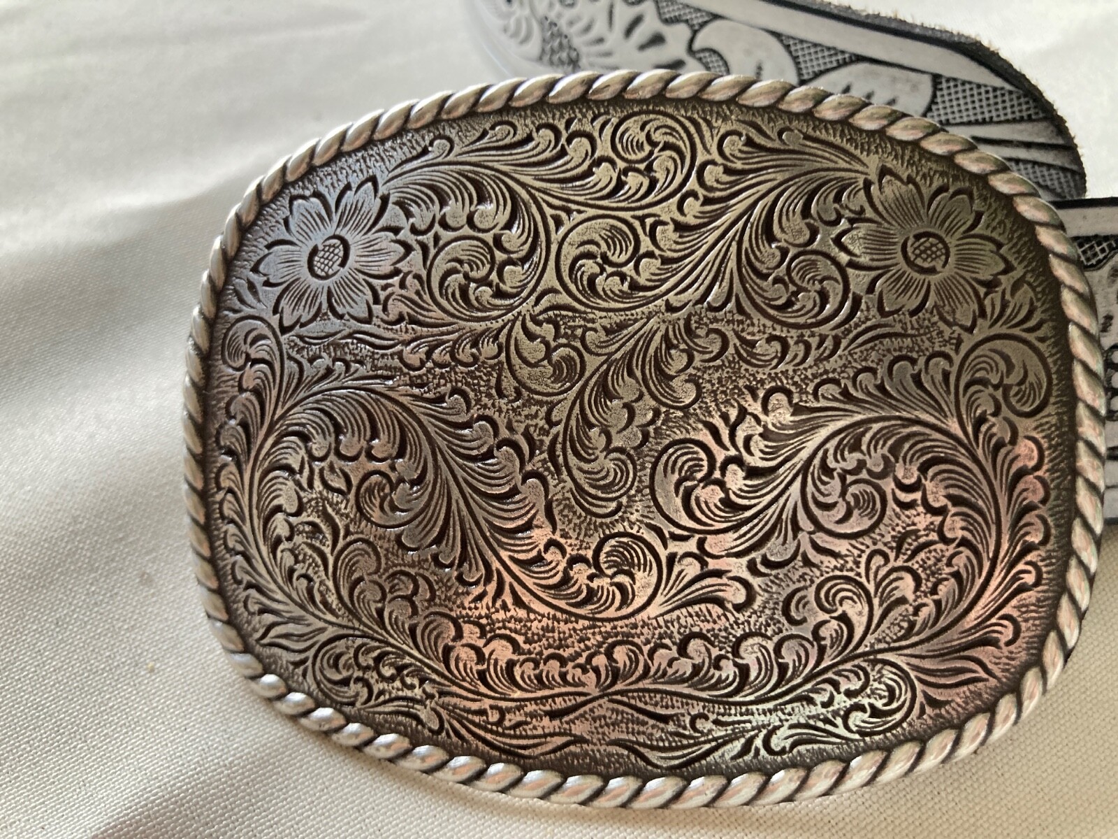 BS220 Western Floral Engraved Embossed Tooled Genuine Leather Belt Strap w/Sn...