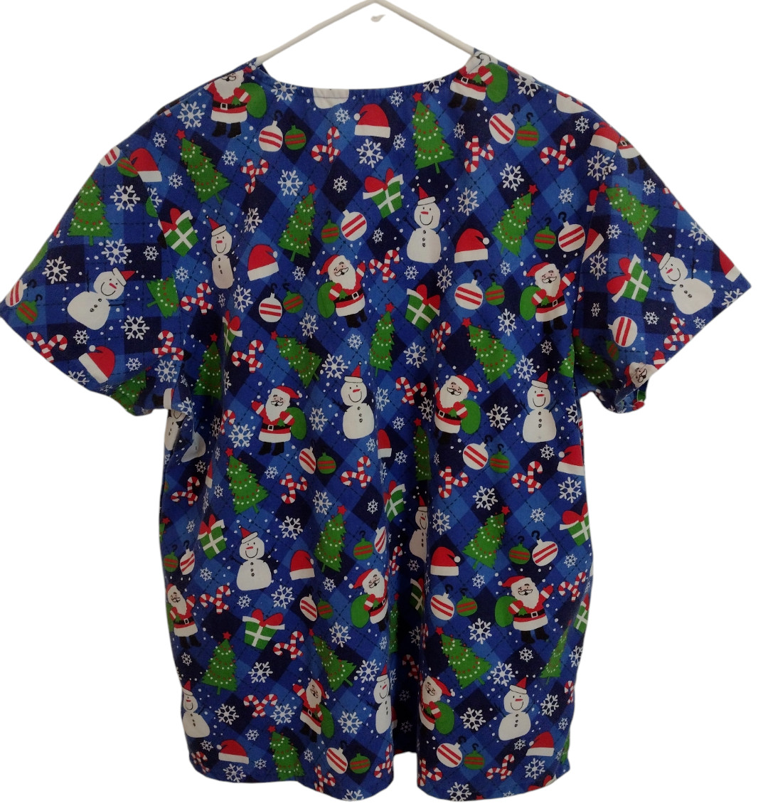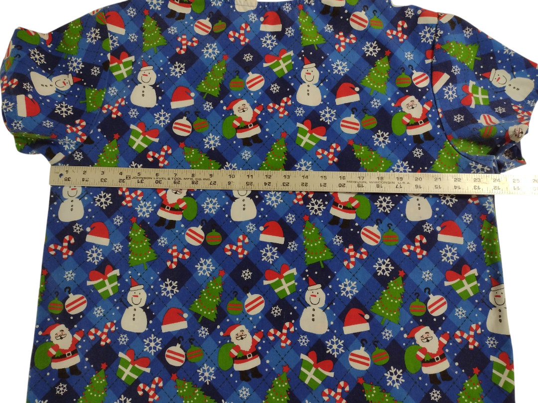 Cassandra O XL Christmas V Neck Scrub Top Santa Snowmen Candy Canes