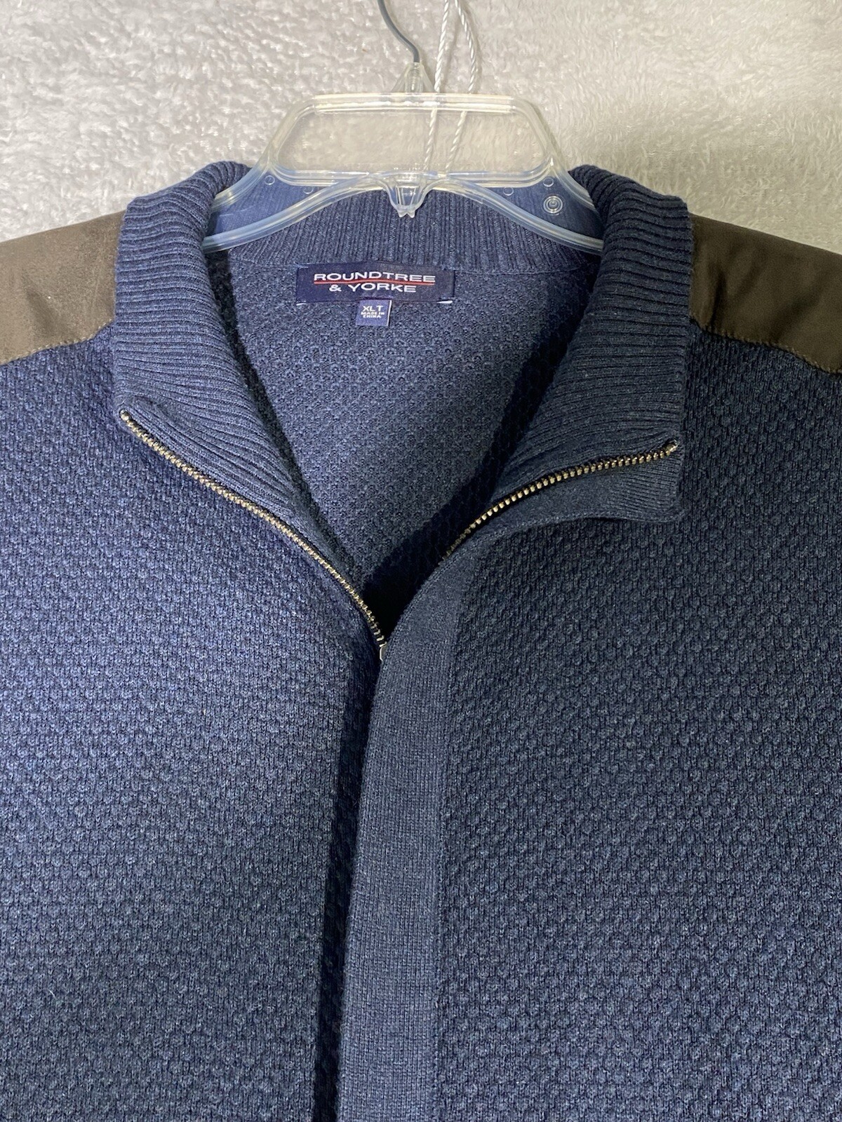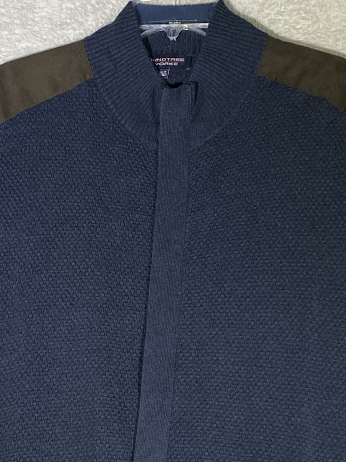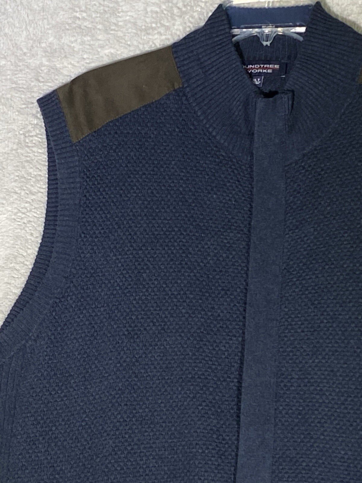 как выглядит Roundtree Yorke Sweater Vest Men s Size XLT Blue Knit Full Zip Pockets фото