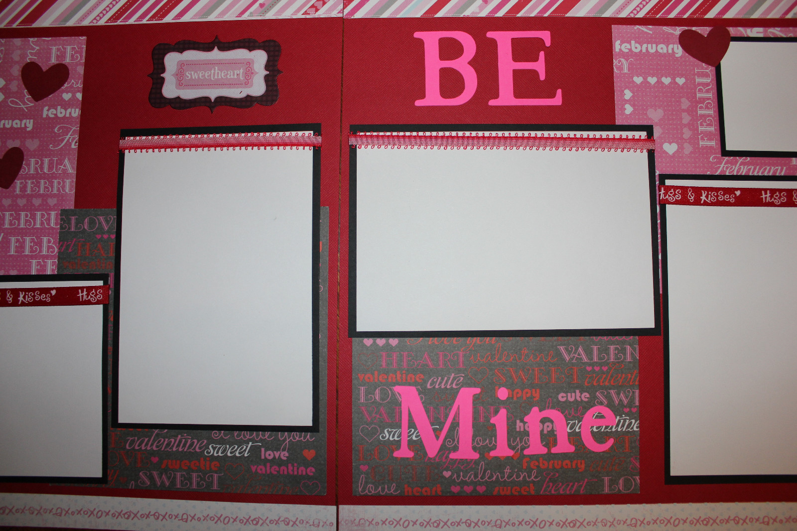 Valentine's Day scrapbook pages 2 each 12 x 12 double page handmade photo ready