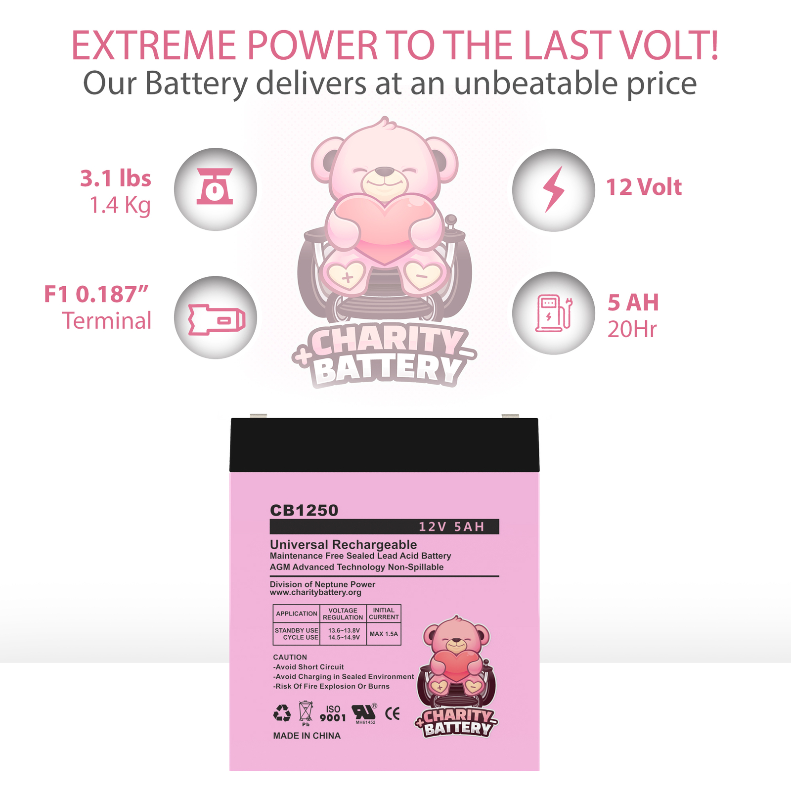 Compatible Battery Sizes: 12V 4Ah, 4.5Ah & 5ah