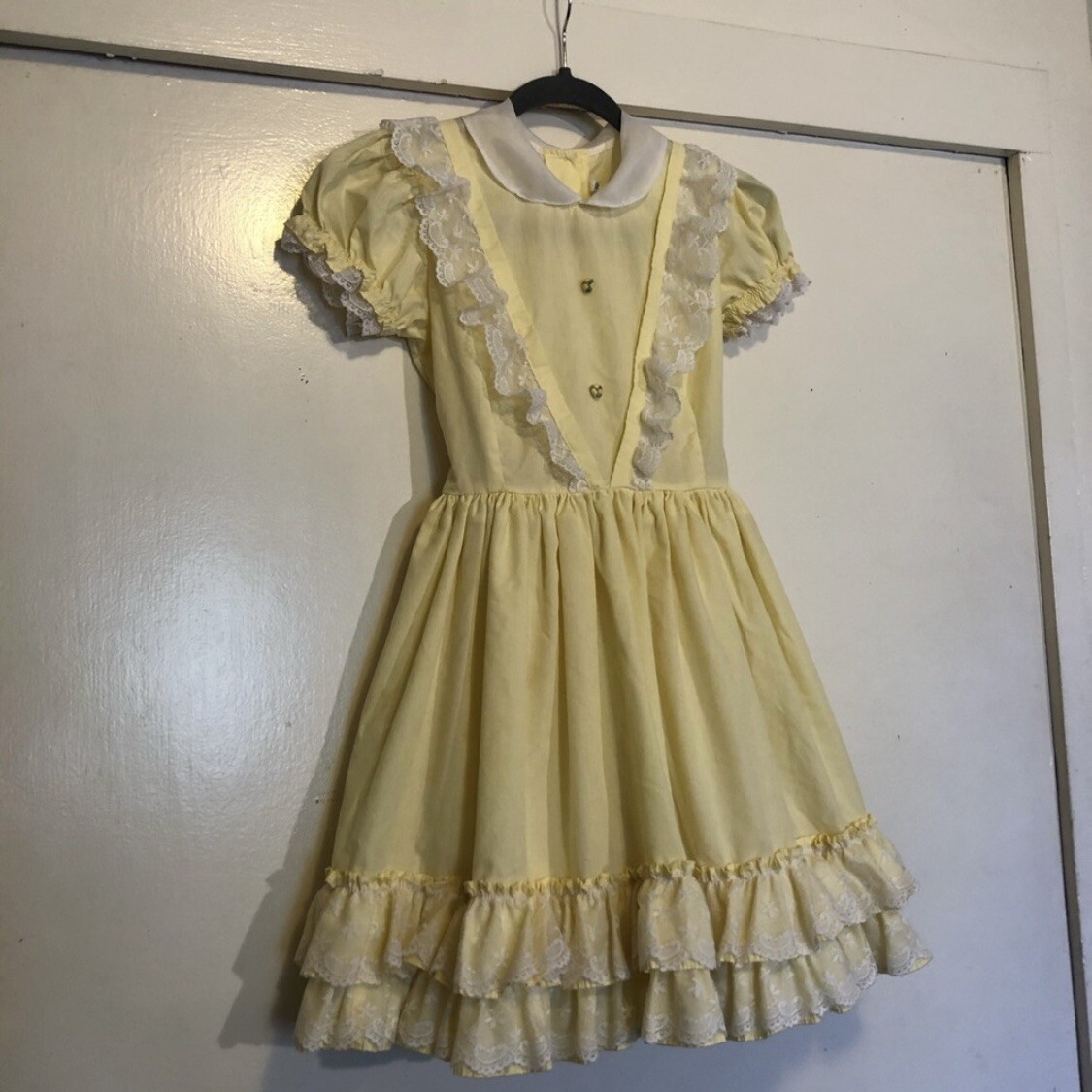 Vintage Betty Oden Ruffle Lace Tulle Pageant Dress Girls Kids Sz 10 Yellow White