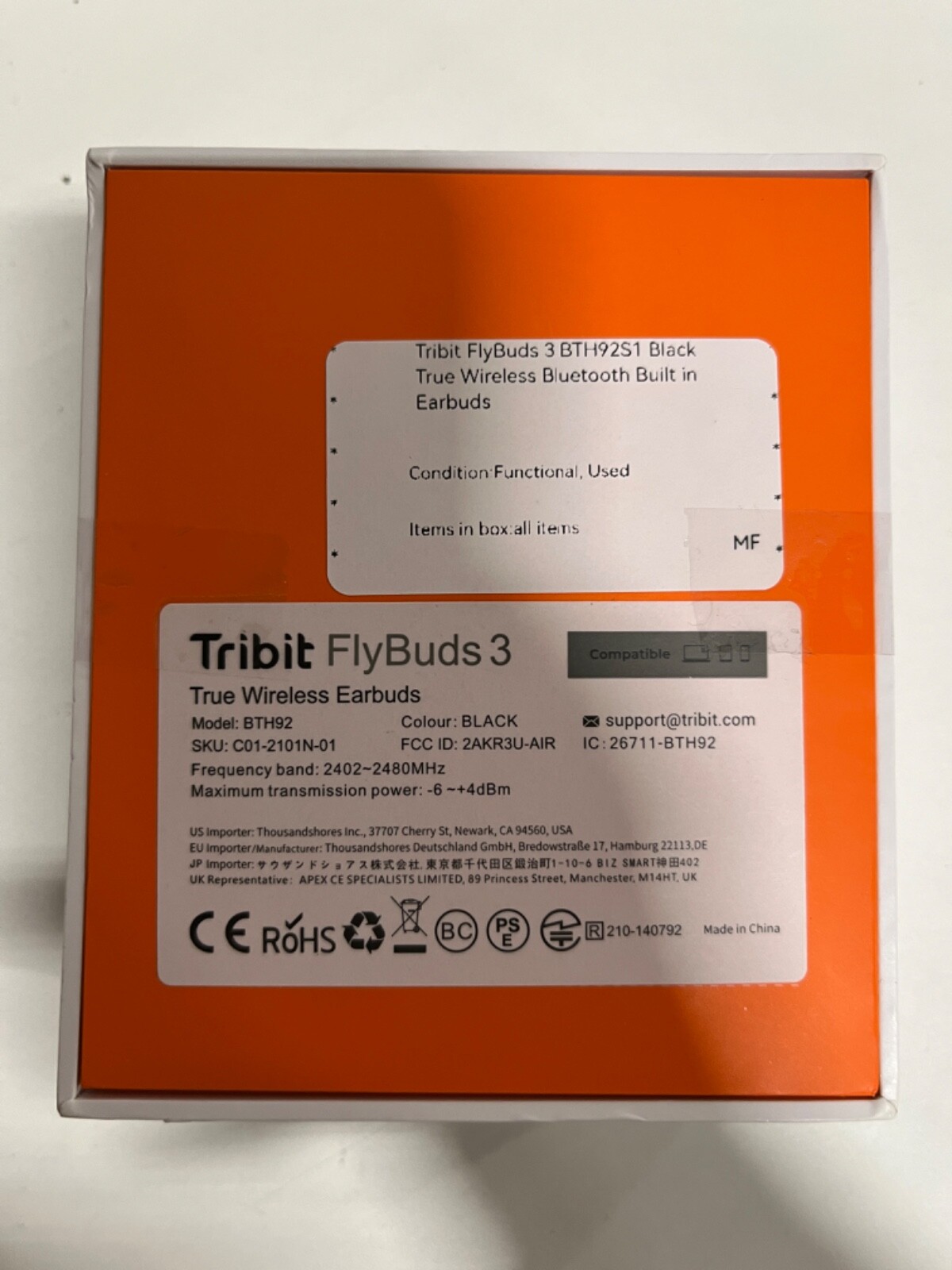 Tribit FlyBuds 3 BTH92S1 Black True Wireless Bluetooth Built in Earbuds