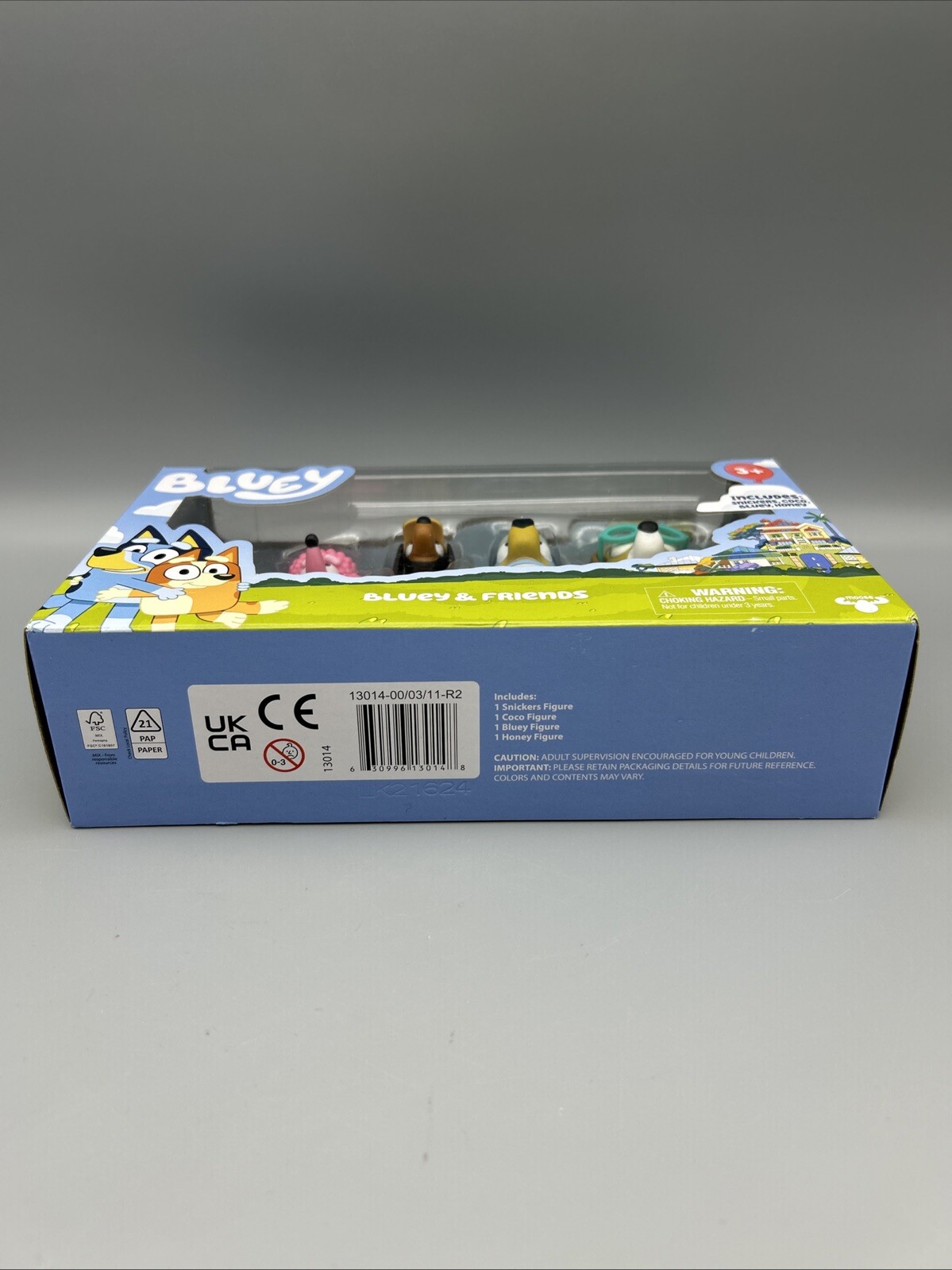 Bluey Friends 4 Pack - Poseable Figures Bluey, Snickers, Coco Honey NIB - B