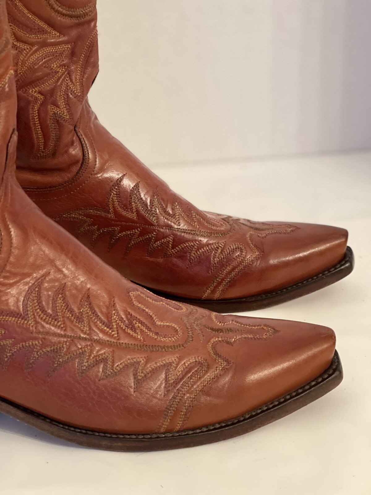 Vintage Lucchese 1883 Embroidered Brown Leather Snip Toe Western Boots US 9.5 D