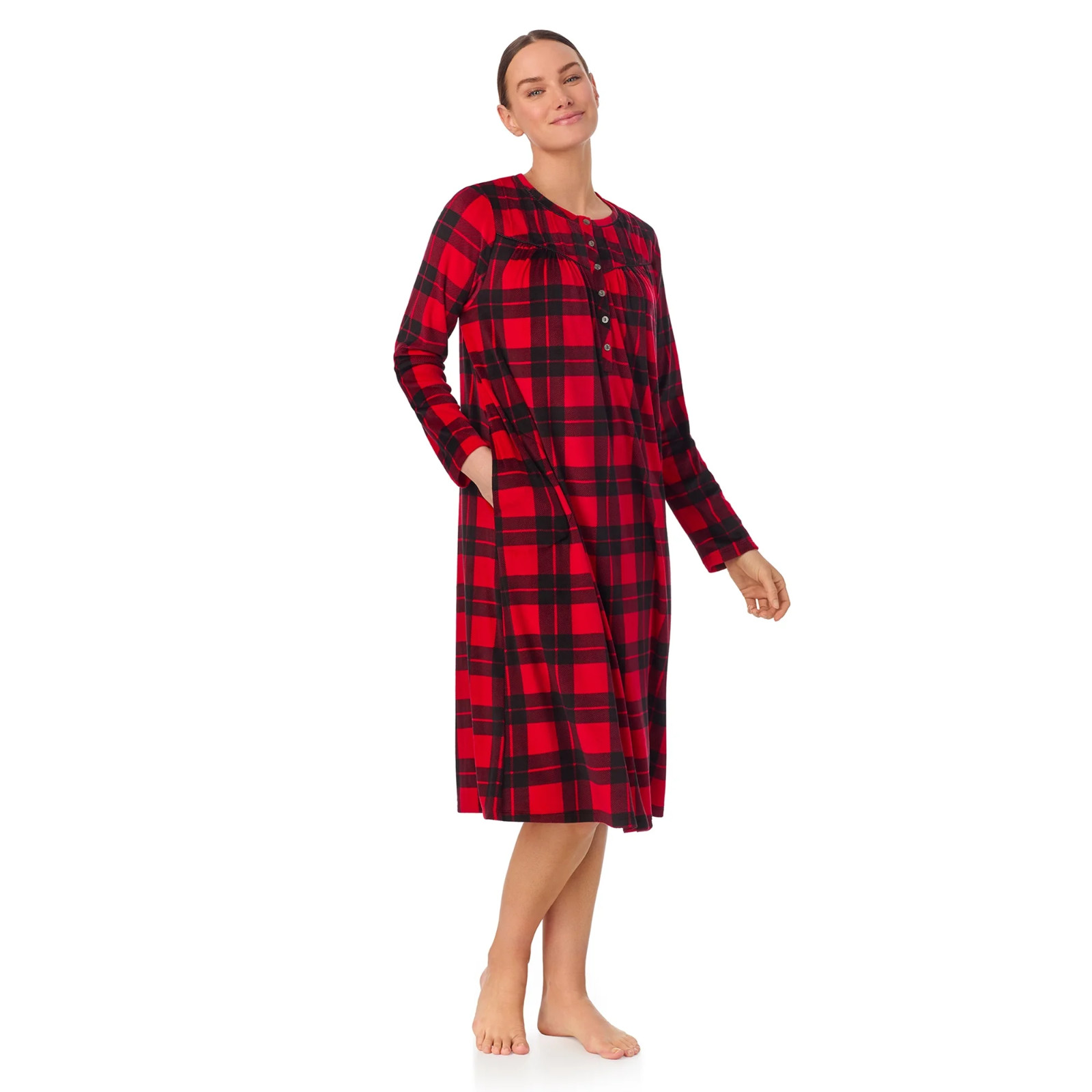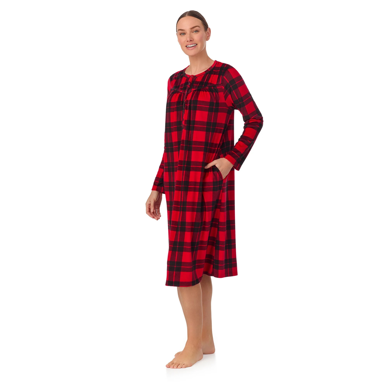 как выглядит Aria Collection Nightgown Long Sleeve Velour Many Sizes Red Plaid Pockets New фото