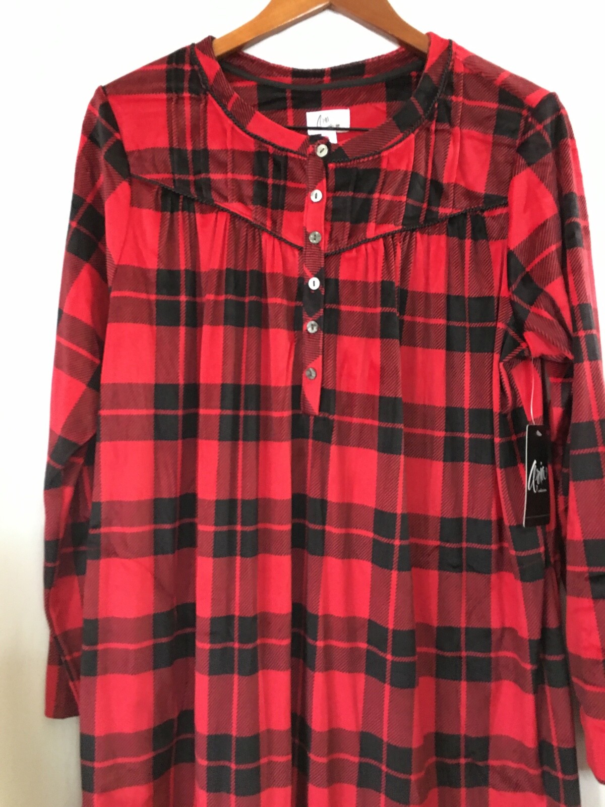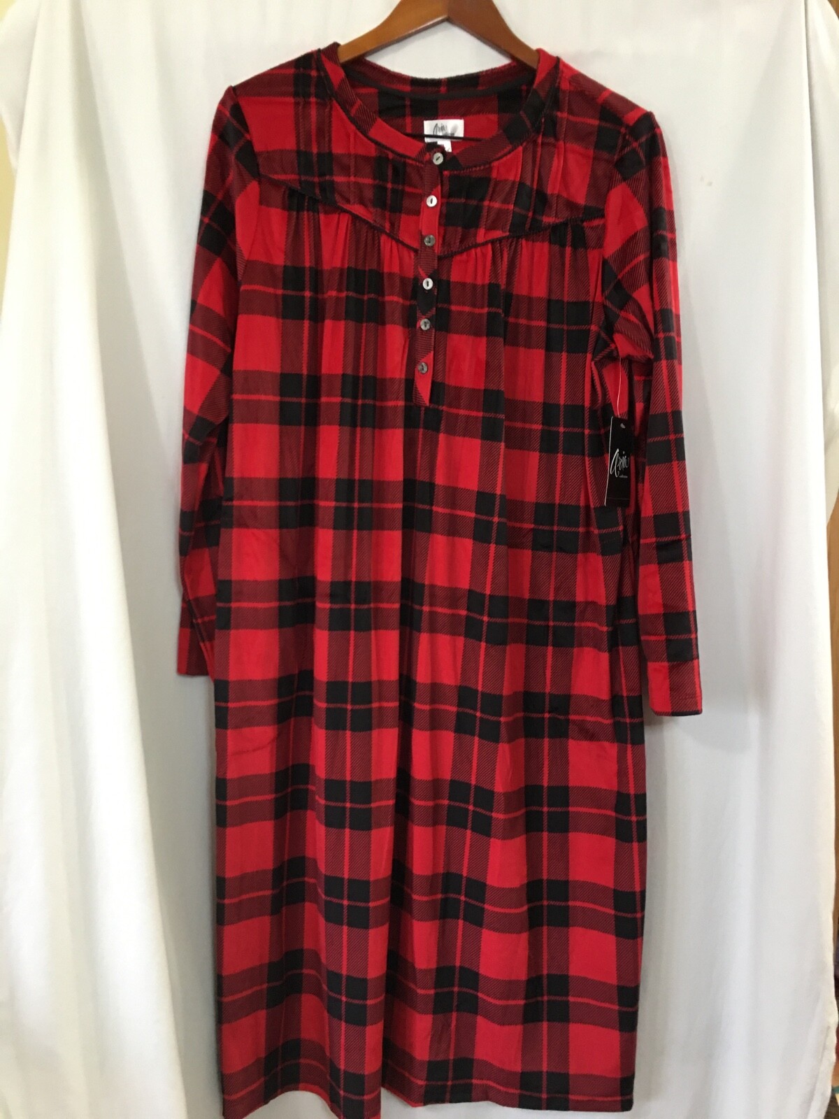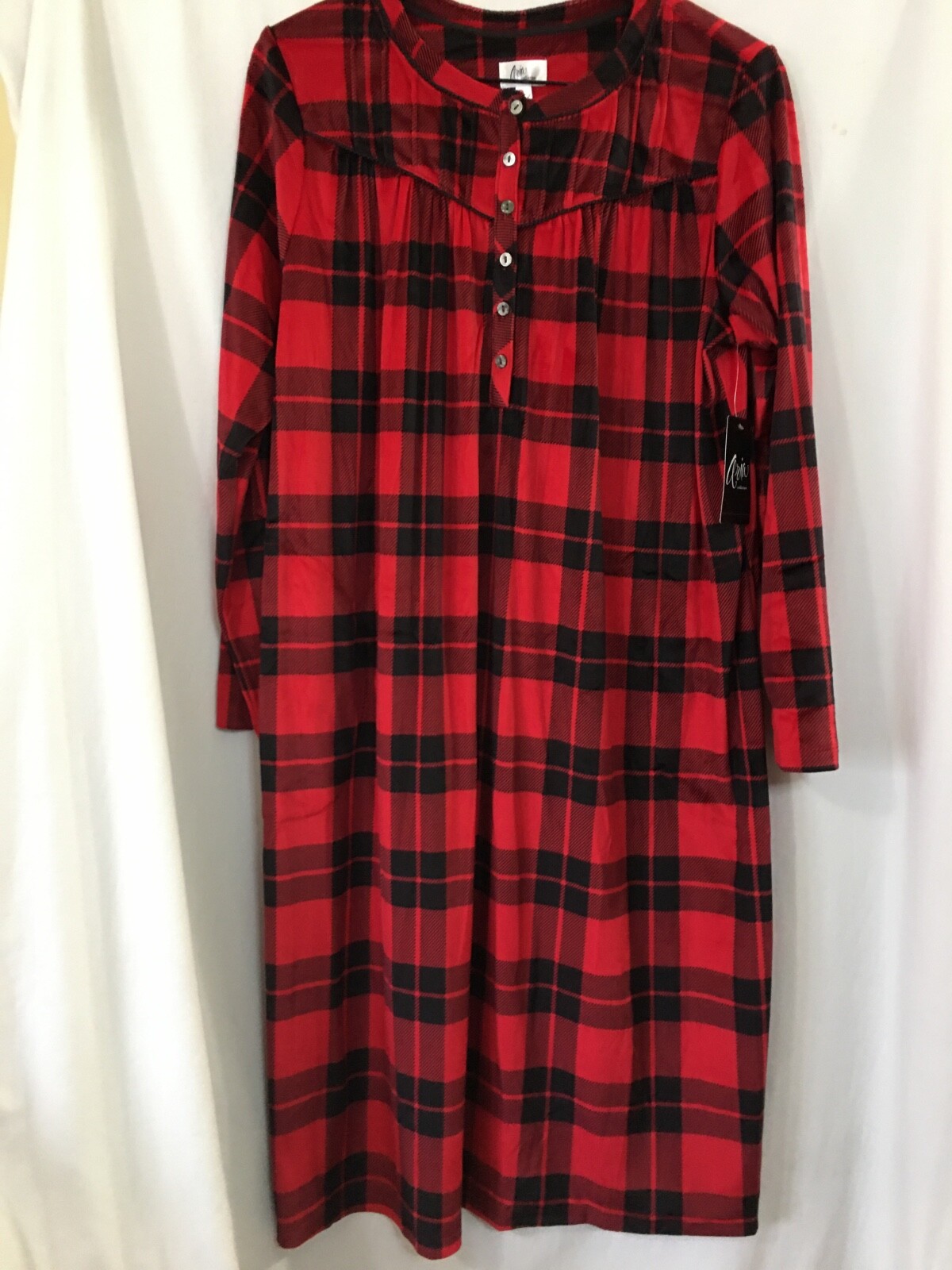 Aria Collection Nightgown Long Sleeve Velour Many Sizes Red Plaid Pockets New