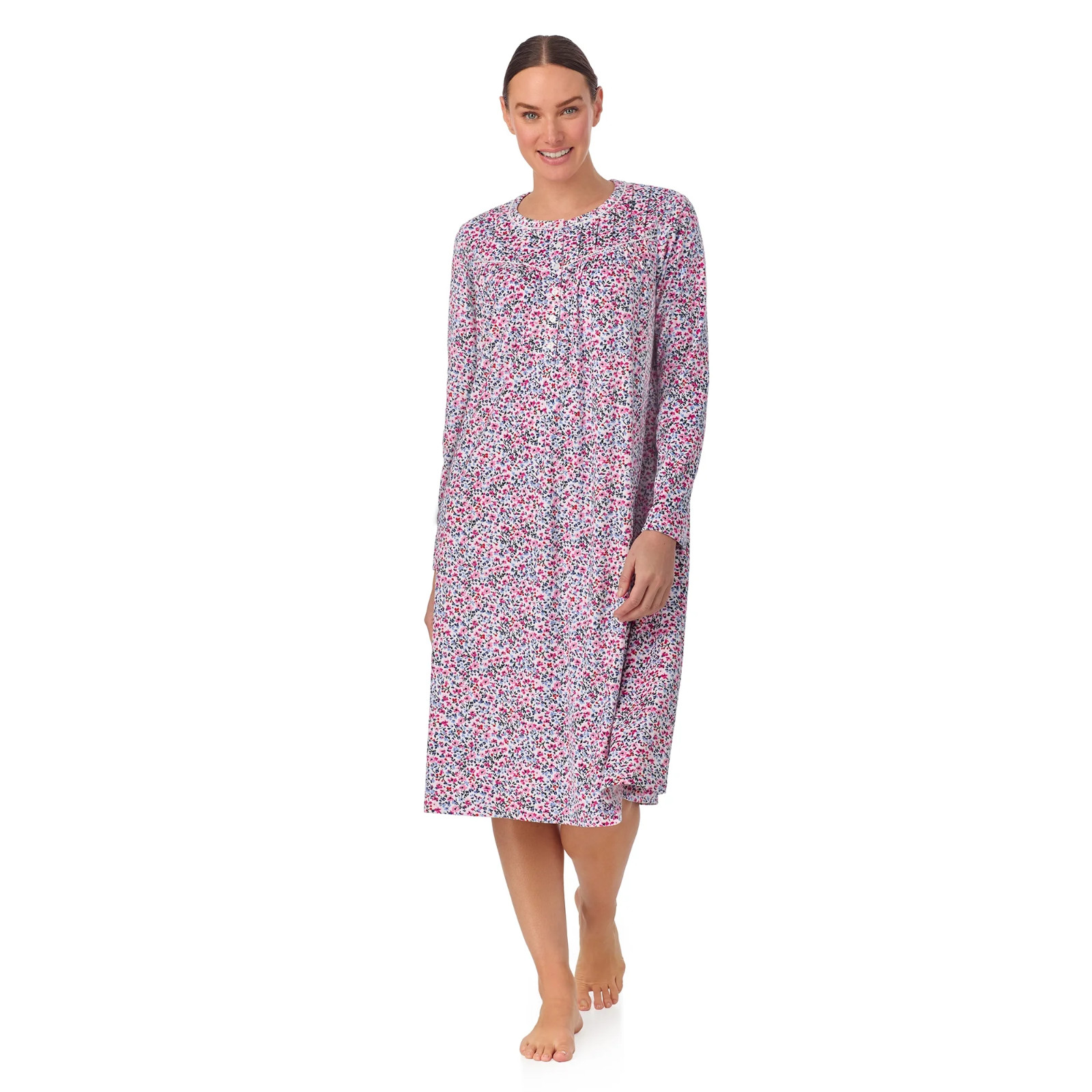 как выглядит Aria Collection Nightgown Long Sleeve Velour Many Sizes White Floral Pockets New фото