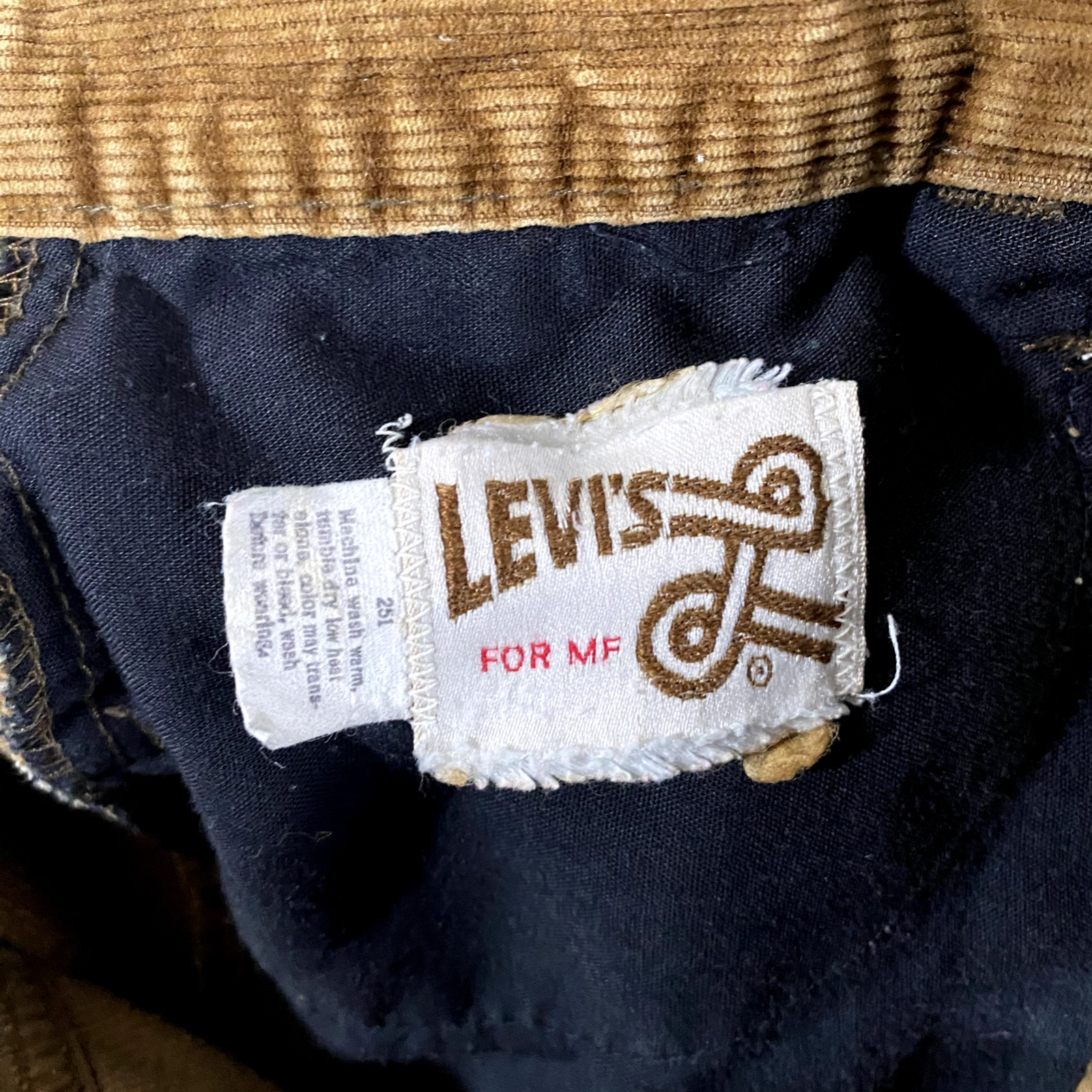 как выглядит Vintage 70s Levis For MF Corduroy Distressed Brown Tab Pants Mens 12 28 x 29 фото