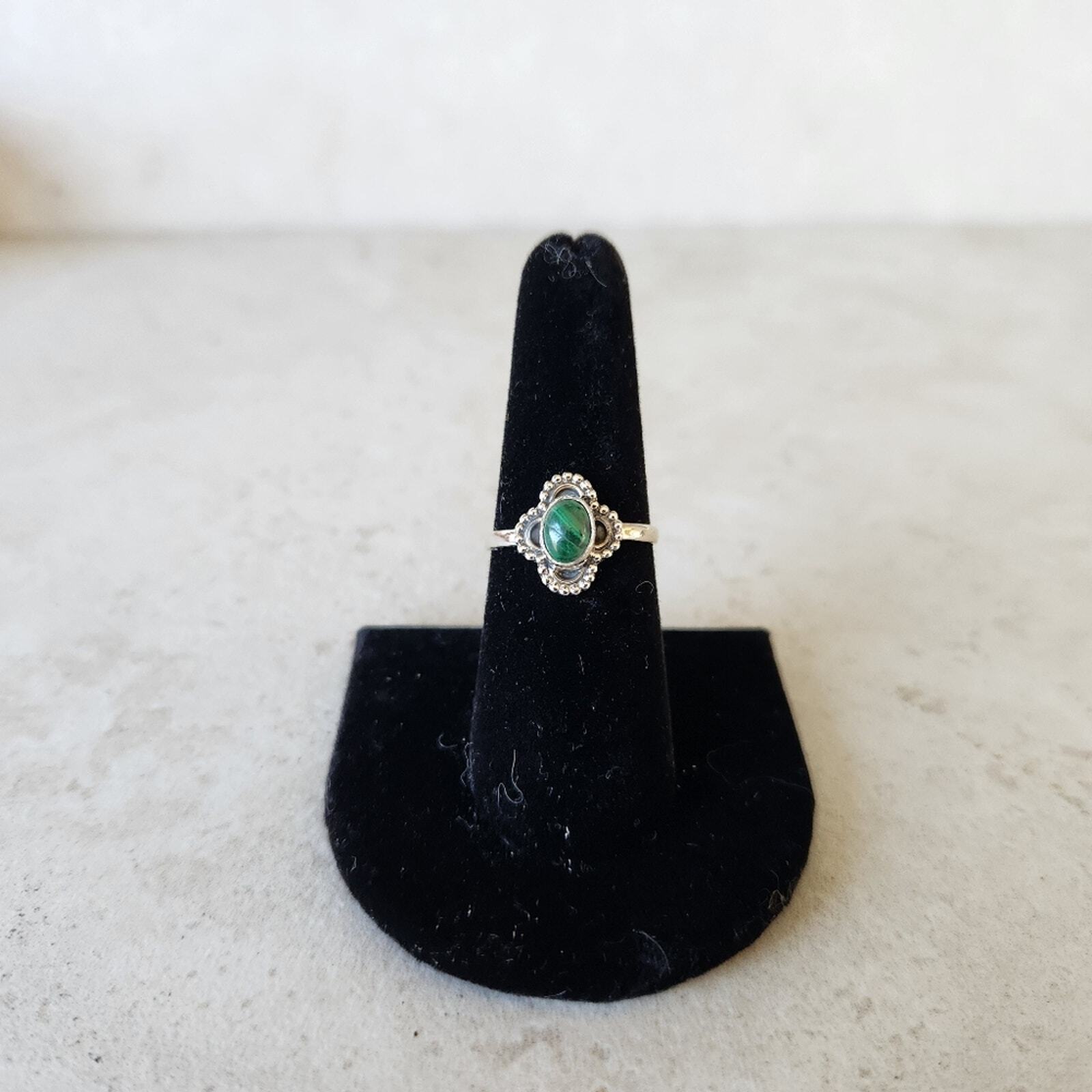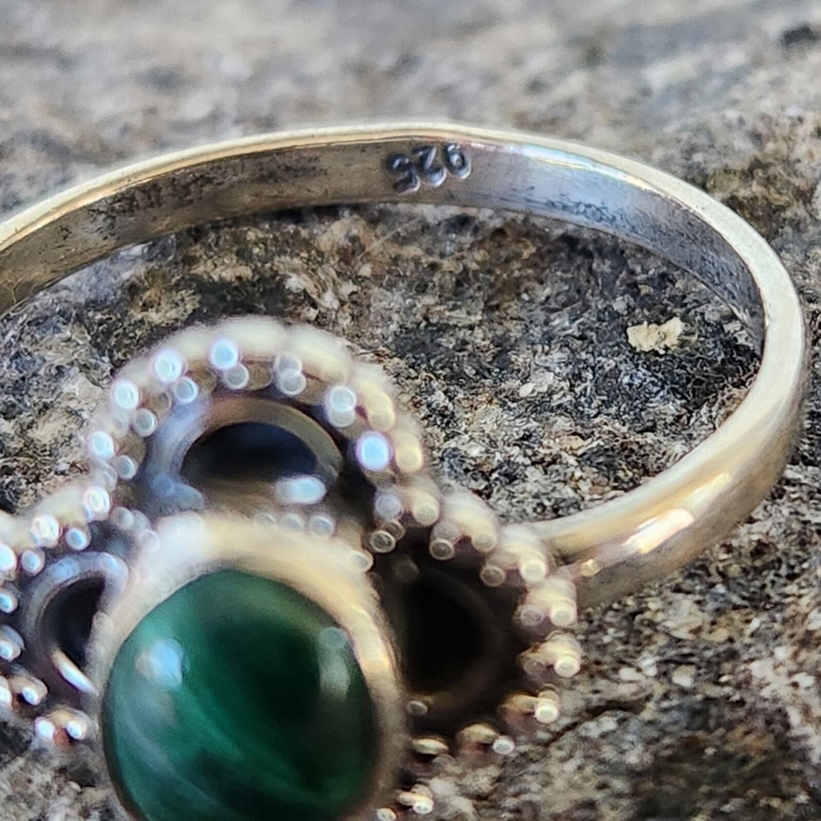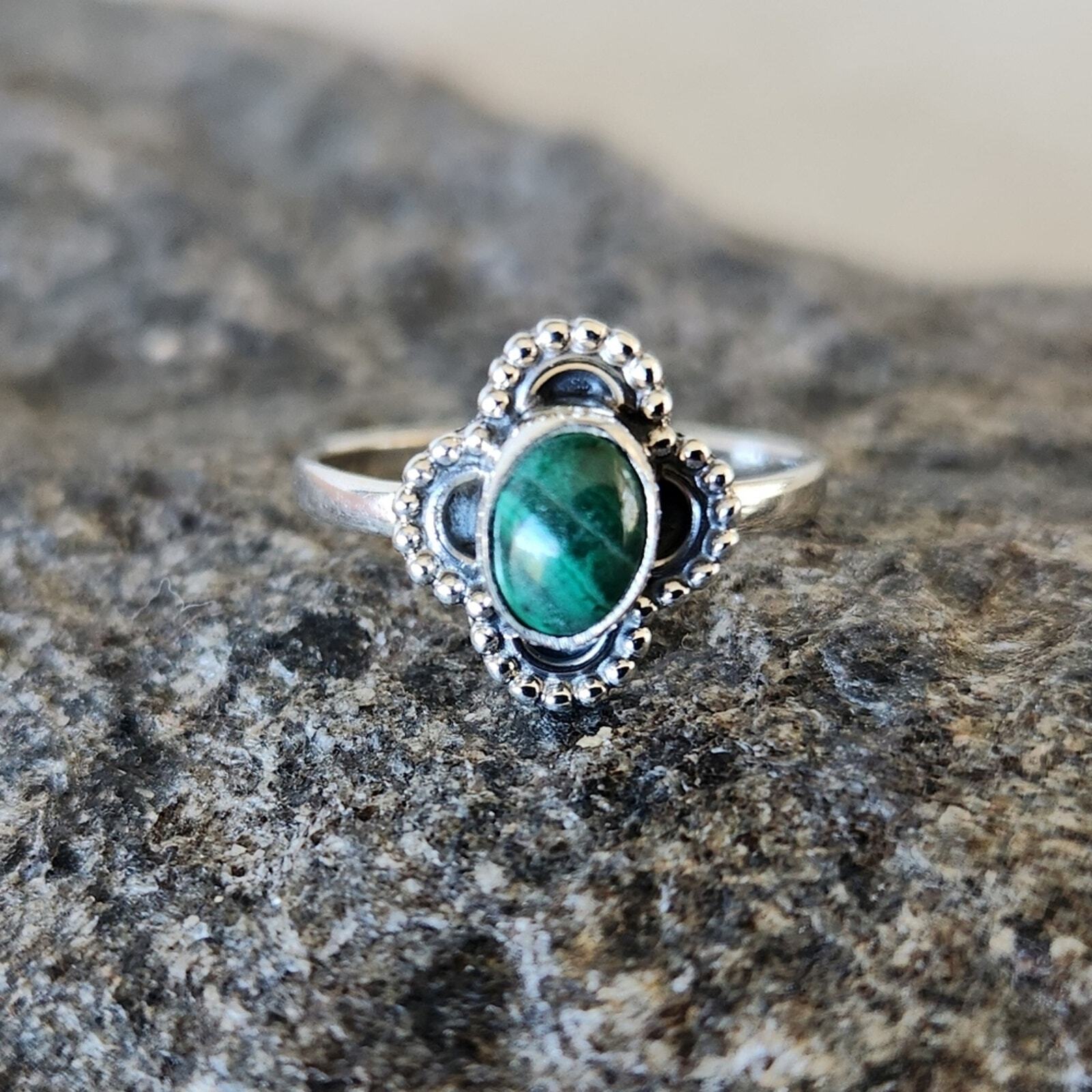NEW 925 Sterling Silver Bezel Set Oval Malachite Women's Ring Size 7.25