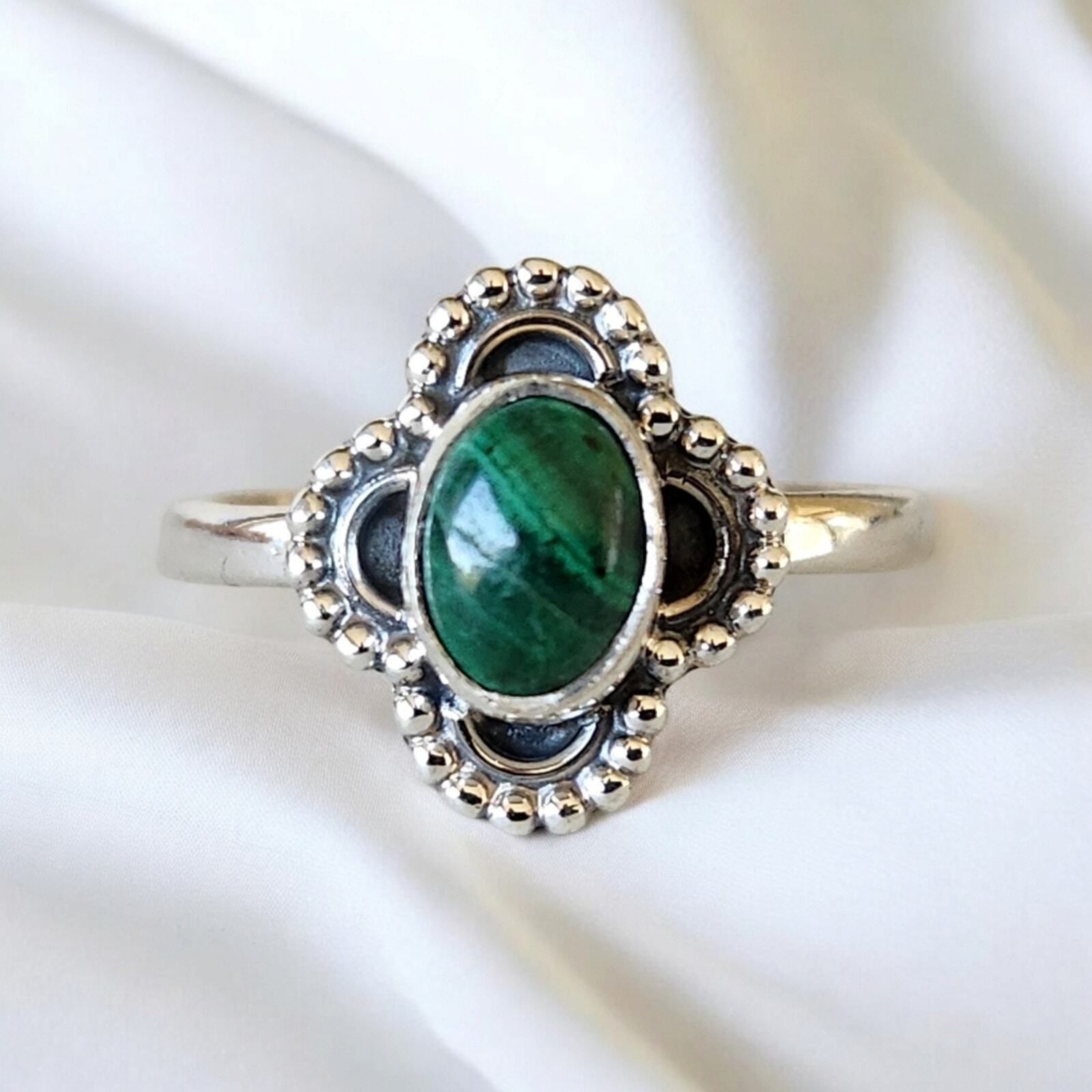как выглядит NEW 925 Sterling Silver Bezel Set Oval Malachite Women
