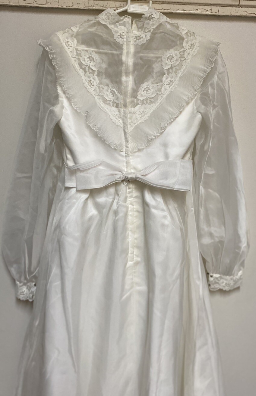 VTG White wedding dress 60 s 70 s Removable Train Prairie Cottage Union Made XS