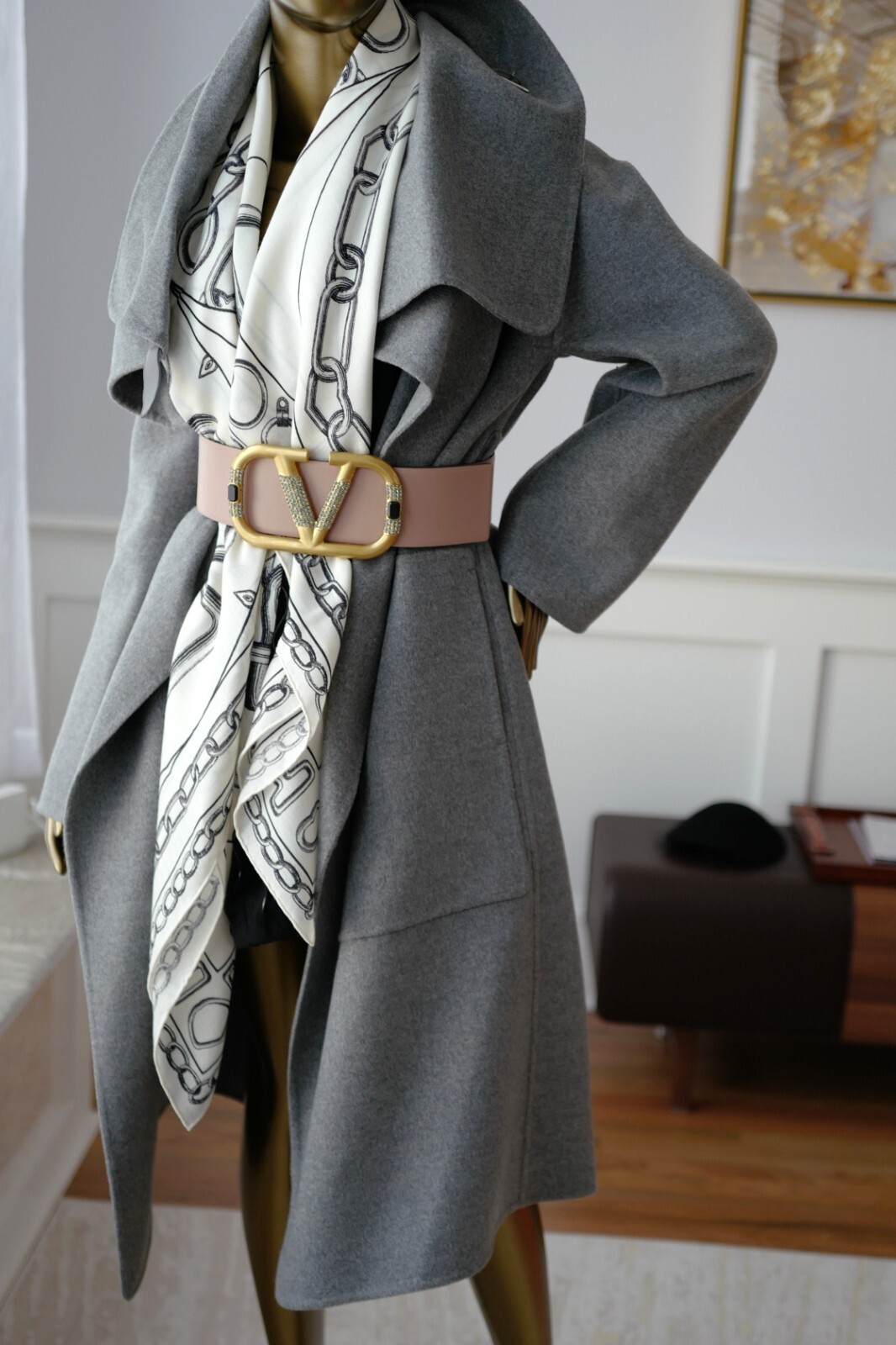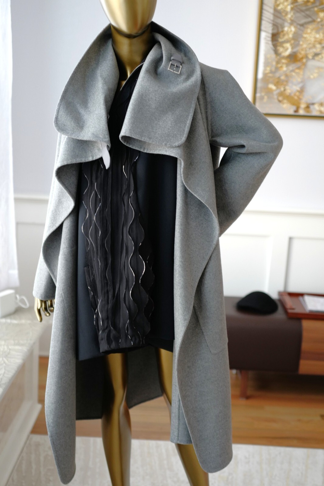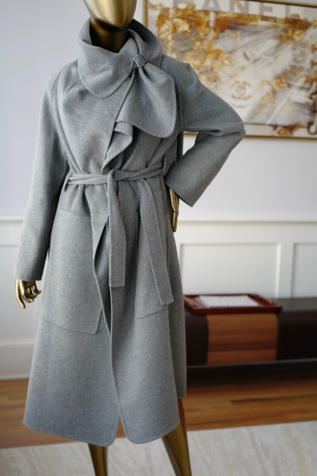 NEW Hermes Double-face Cashmere Long Inspi Coat Couverture Gris Crayon size 36