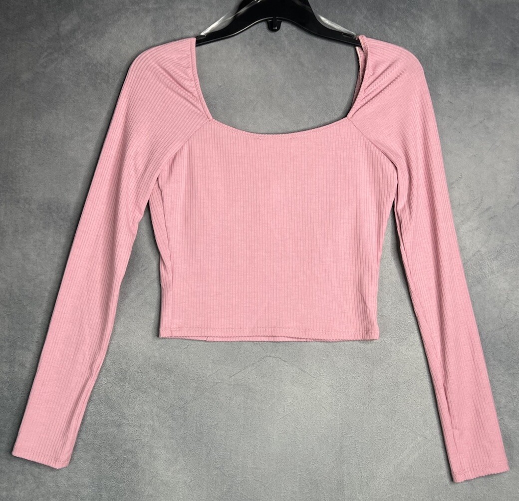 LUSH Corset Silhouette Long Sleeve Top Ribbed Jersey Stretch Lilac Women Small