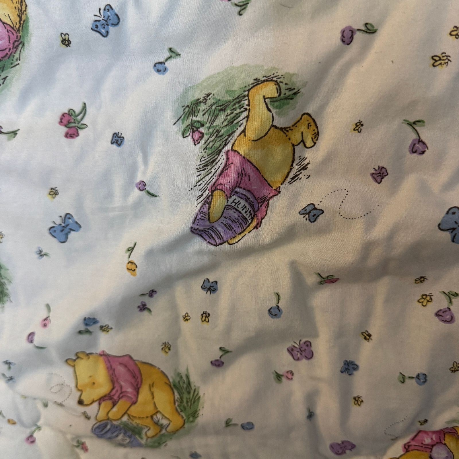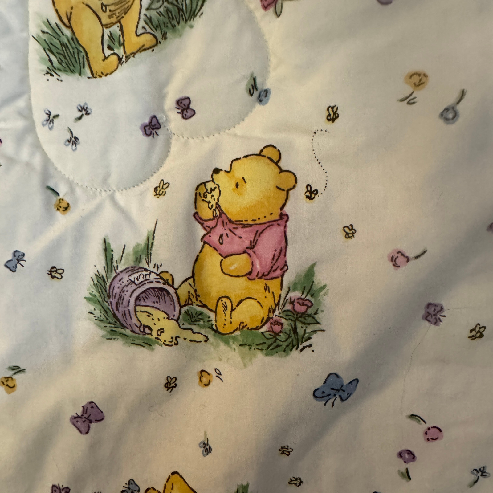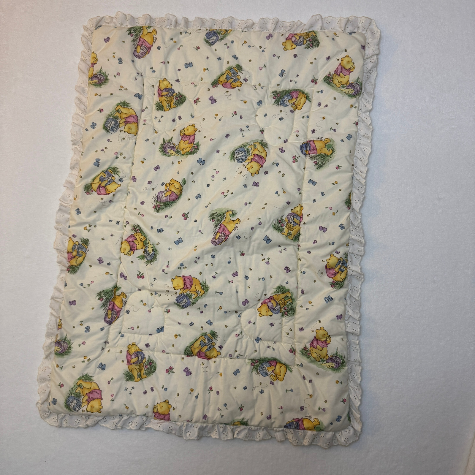 Vintage Winnie the Pooh Classic Crib Comforter Quilt Baby Blanket Eyelet Ruffles