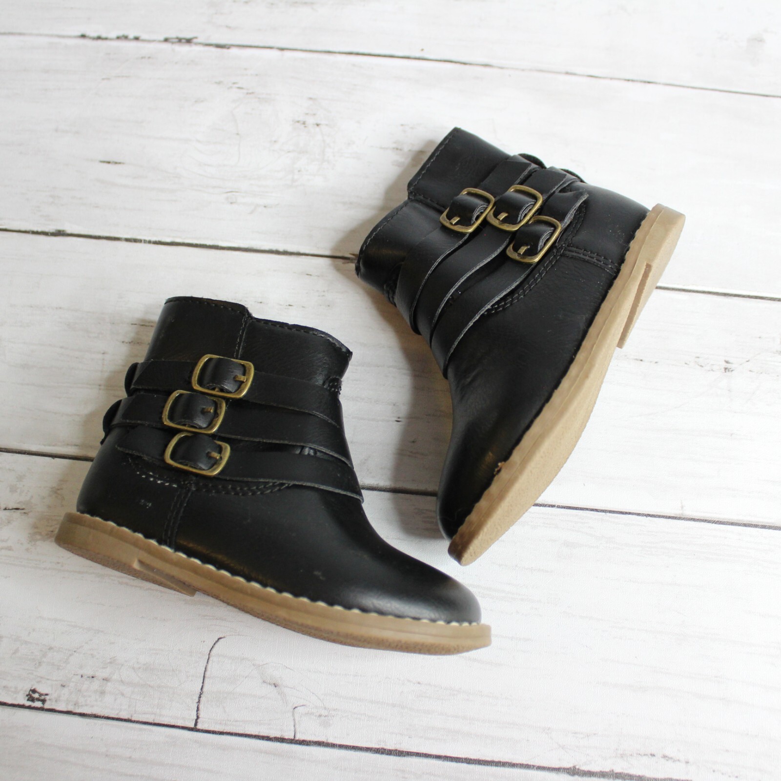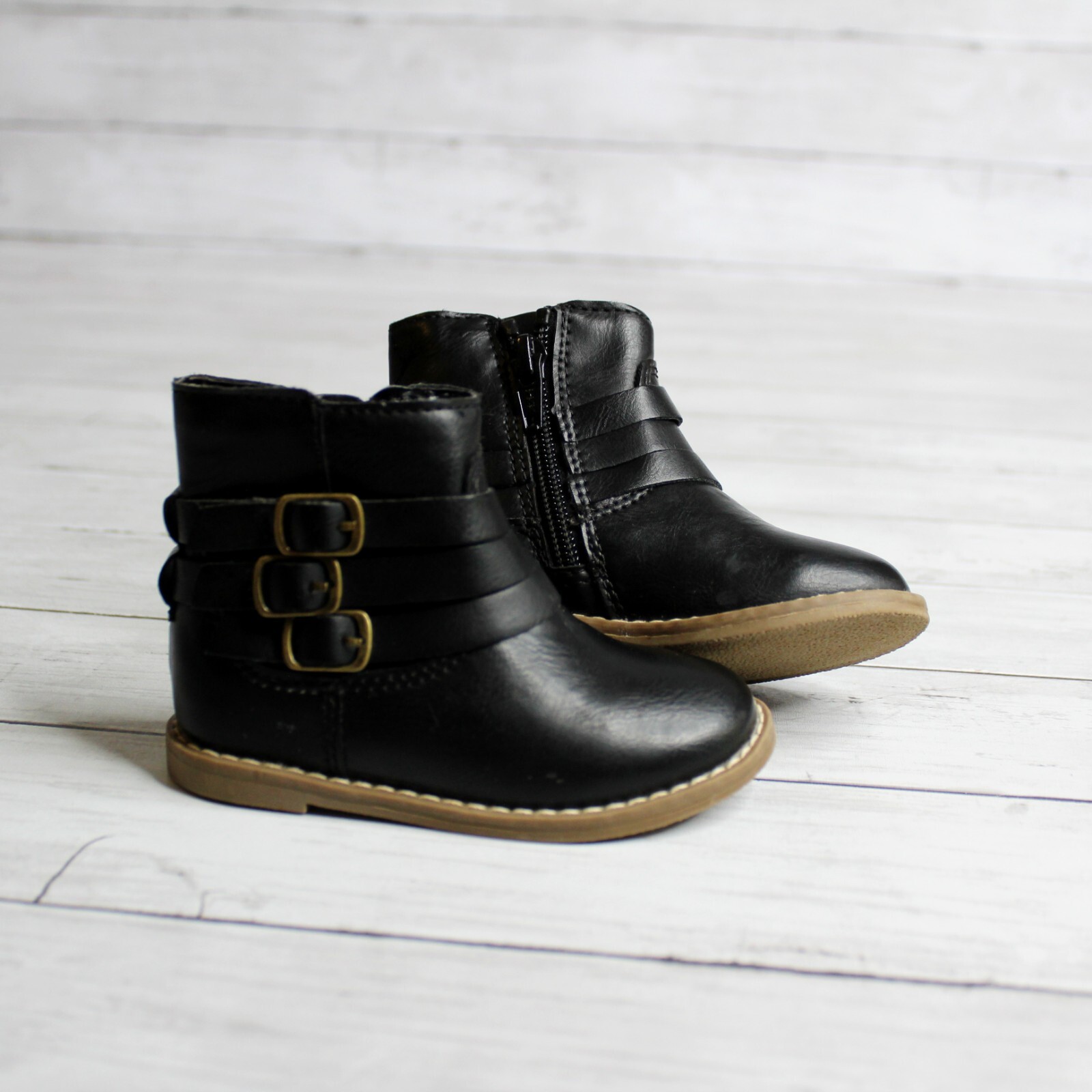 как выглядит Old Navy Baby Girls Black Booties Toddler Size 5 Buckle Fashion Boots Zippers фото