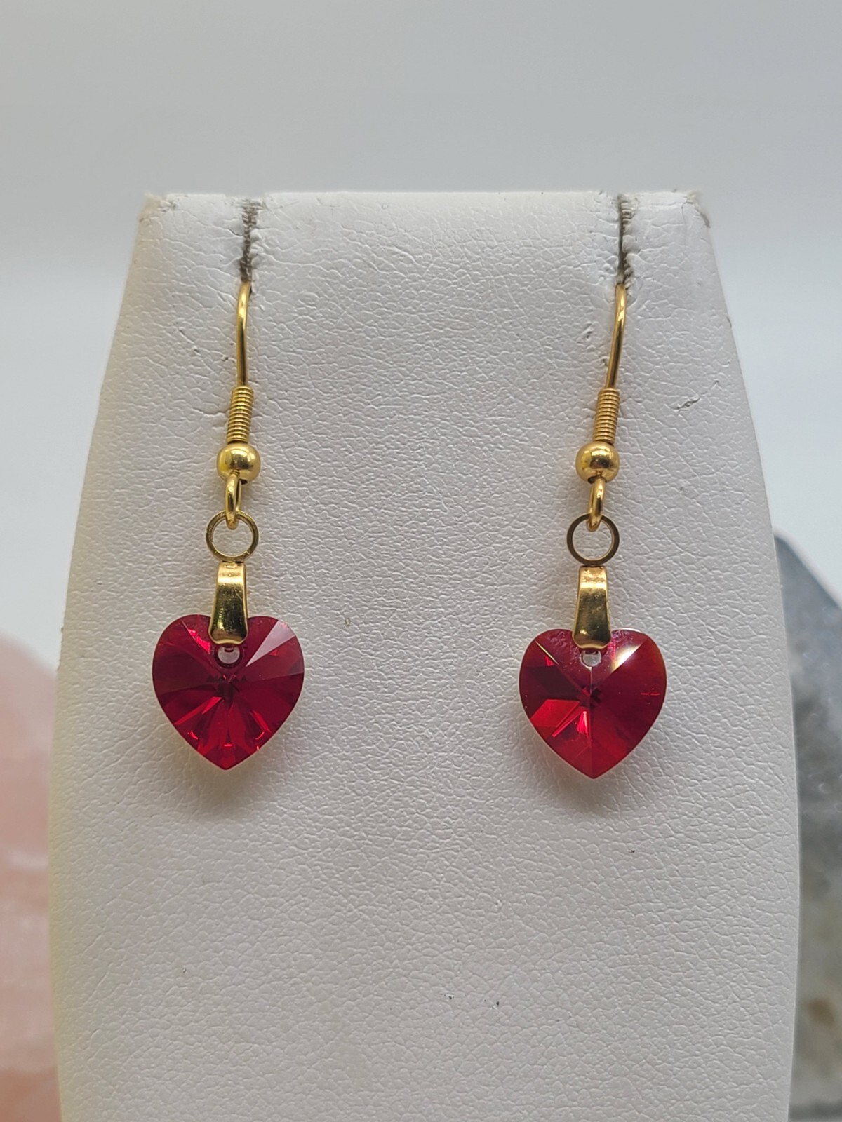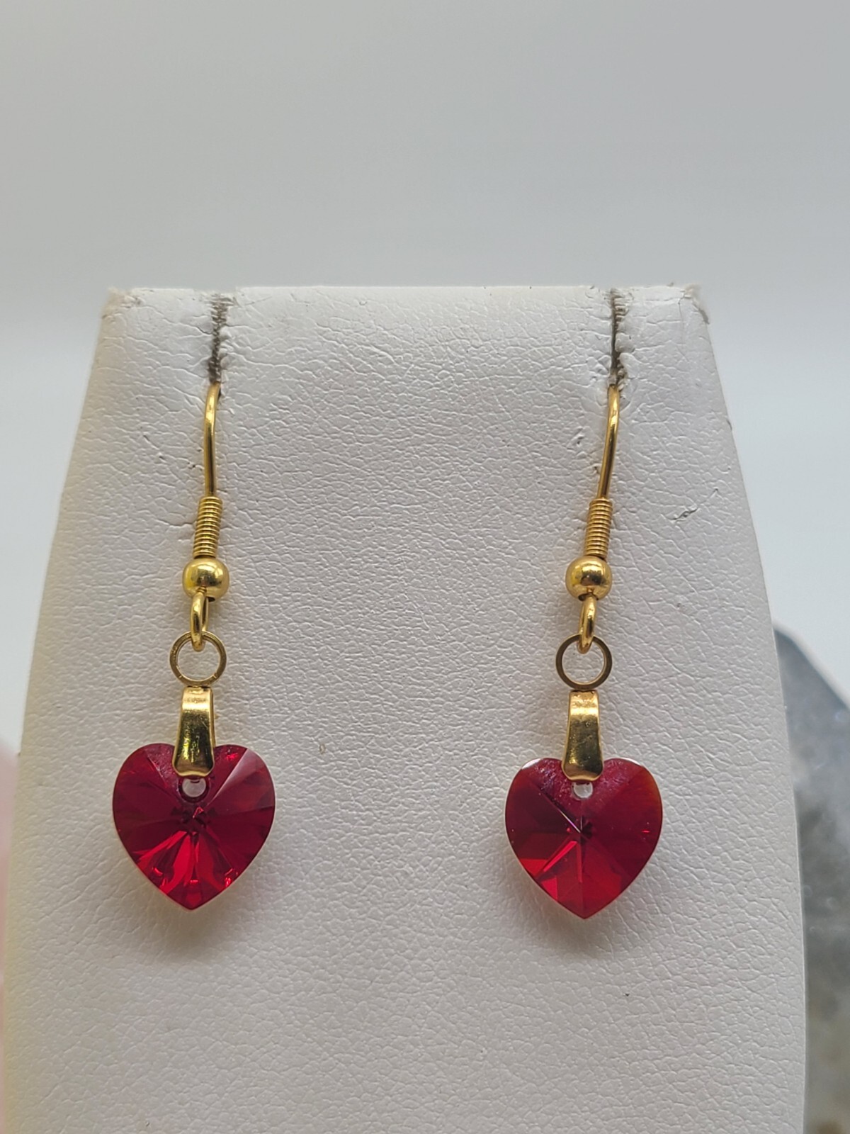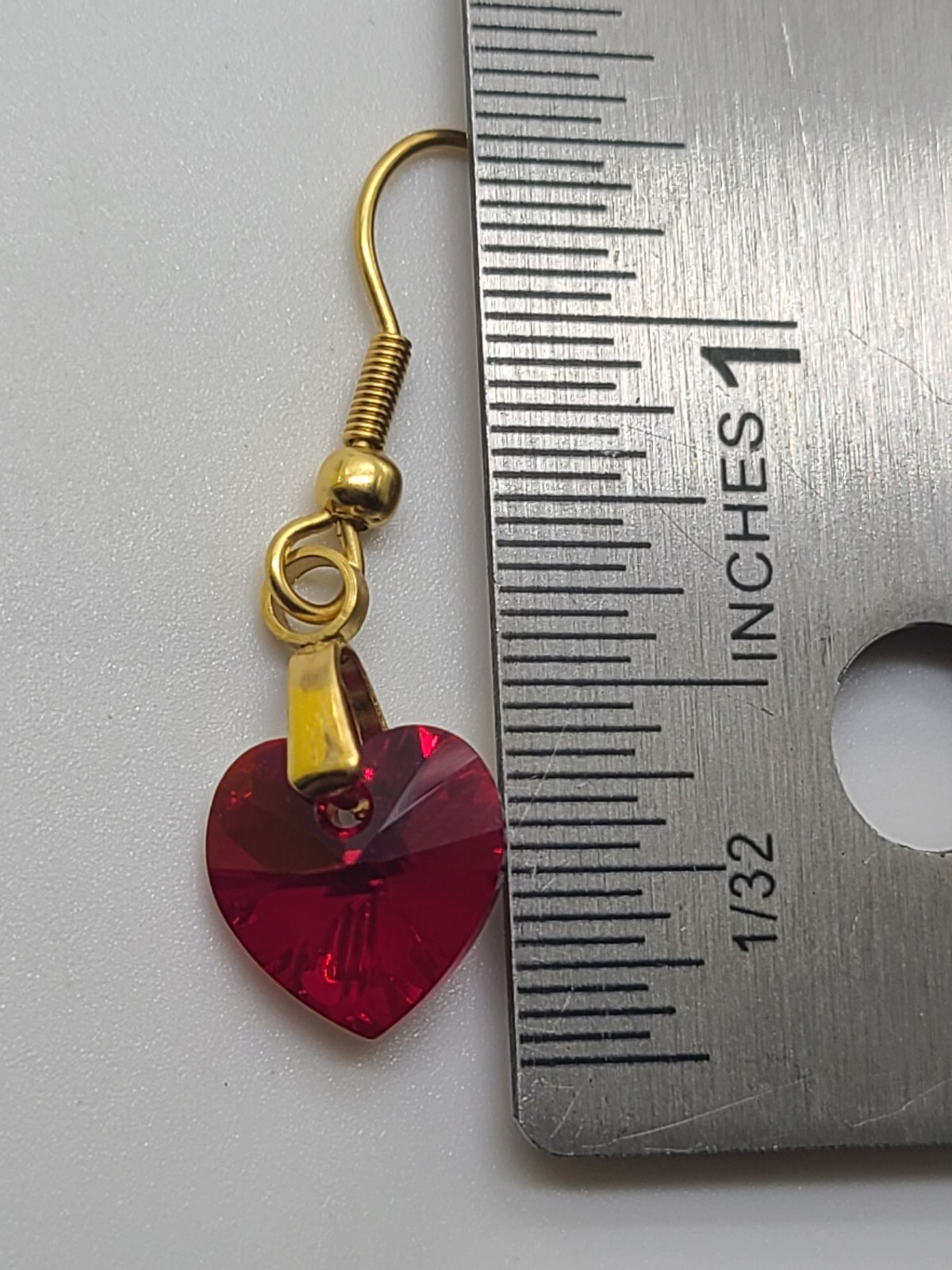 Gorgeous Red 8mm Crystal Heart Yellow Gold Pl Dangle earrings